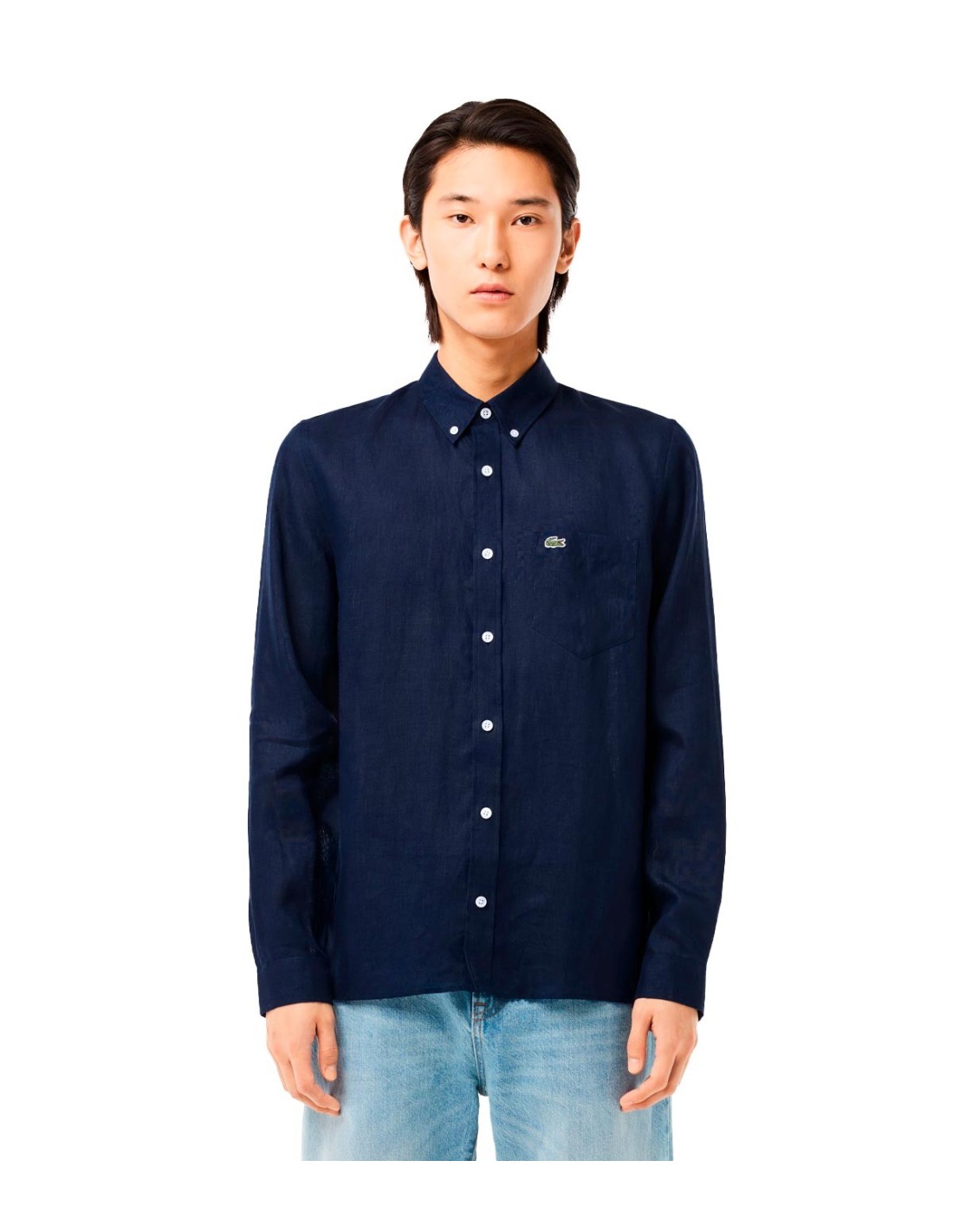 Cierre de botones. Cocodrilo bordado. 100% lino.