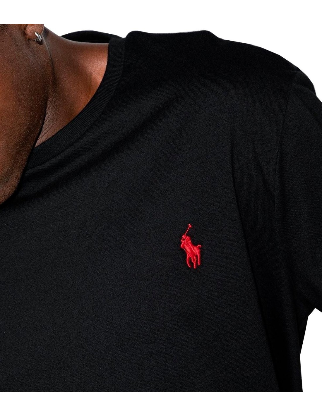Camiseta de Polo Ralph Lauren en color negro, de cuello redondo y manga corta, con un corte regular que garantiza comodidad y ajuste clásico. Confeccionada en 100% algodón, es suave y transpirable. El icónico logo del caballo bordado en el pecho izquierdo aporta un toque distintivo de estilo. Ideal para un look casual y elegante.