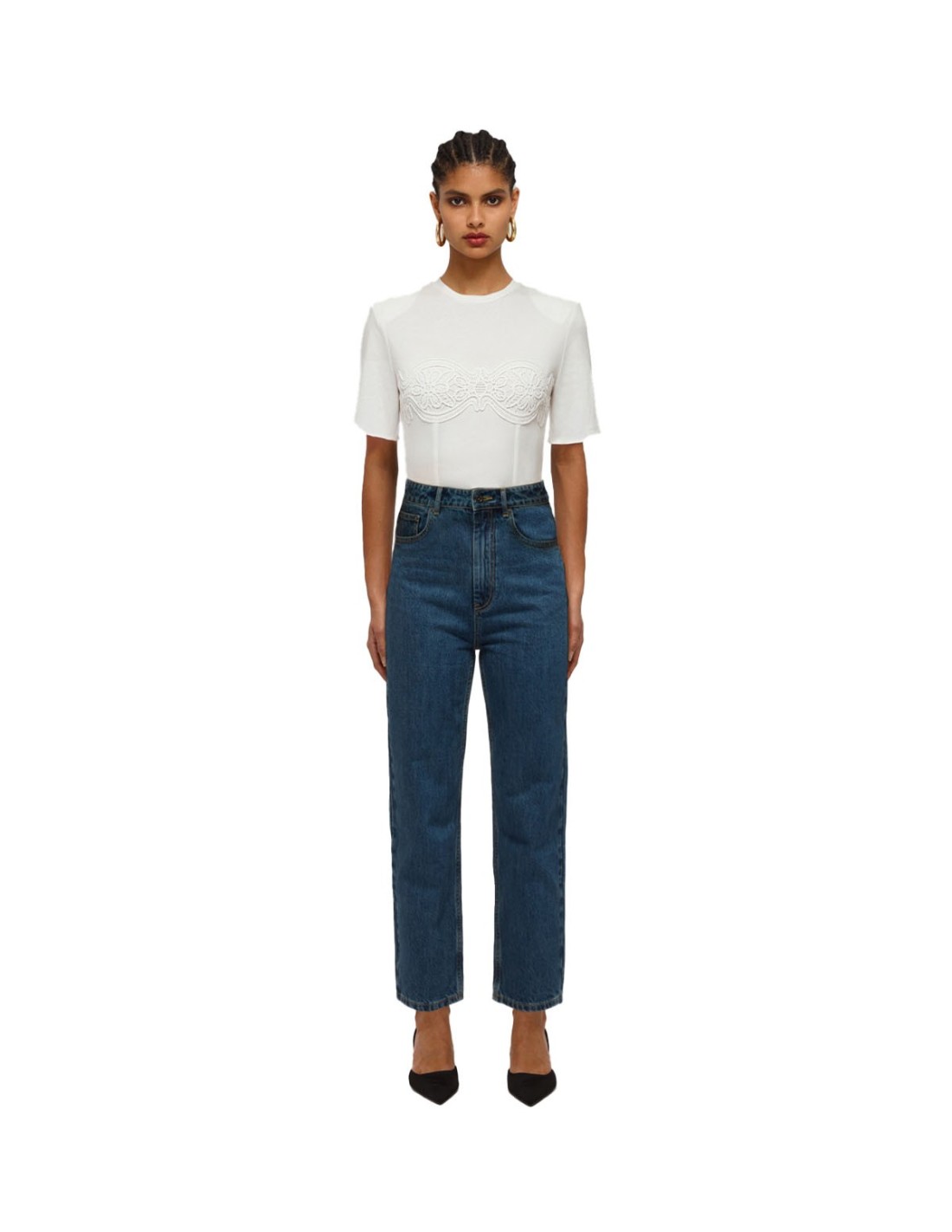 Self PortraittSelf Portrait - Cropped Lace Applique T-Shirt