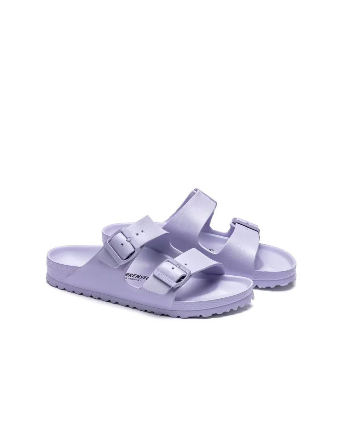BirkenstockLas Chanclas Arizona Eva de Birkenstock en color lavanda combinan comodidad y estilo moderno con un diseño de dos correas, cada una con hebilla de lengüeta de metal ajustable individualmente. Fabricadas en EVA, un material ultraligero, elástico y de alta calidad, ofrecen excelente amortiguación y durabilidad. Son impermeables, lavables y fáciles de mantener. Hechas en Alemania, representan la unión perfecta entre funcionalidad y diseño icónico.