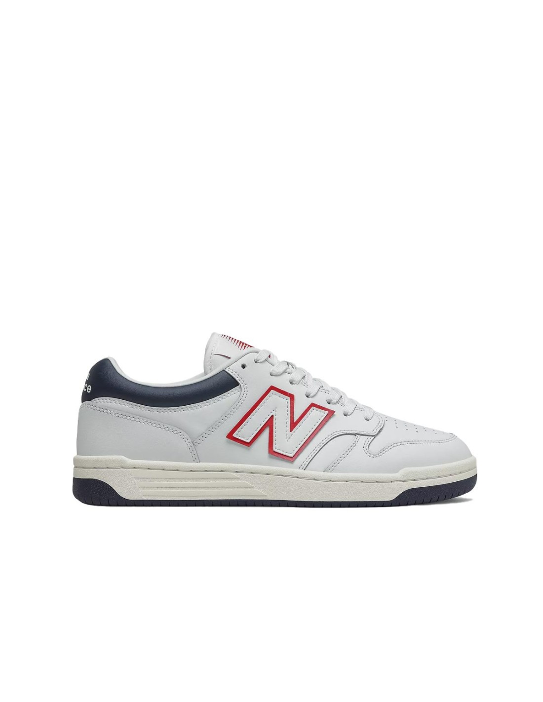 Zapatillas BB480 de New Balance en color blanco con detalles en rojo y marino. Modelo con cordones y puntera perfumada.
