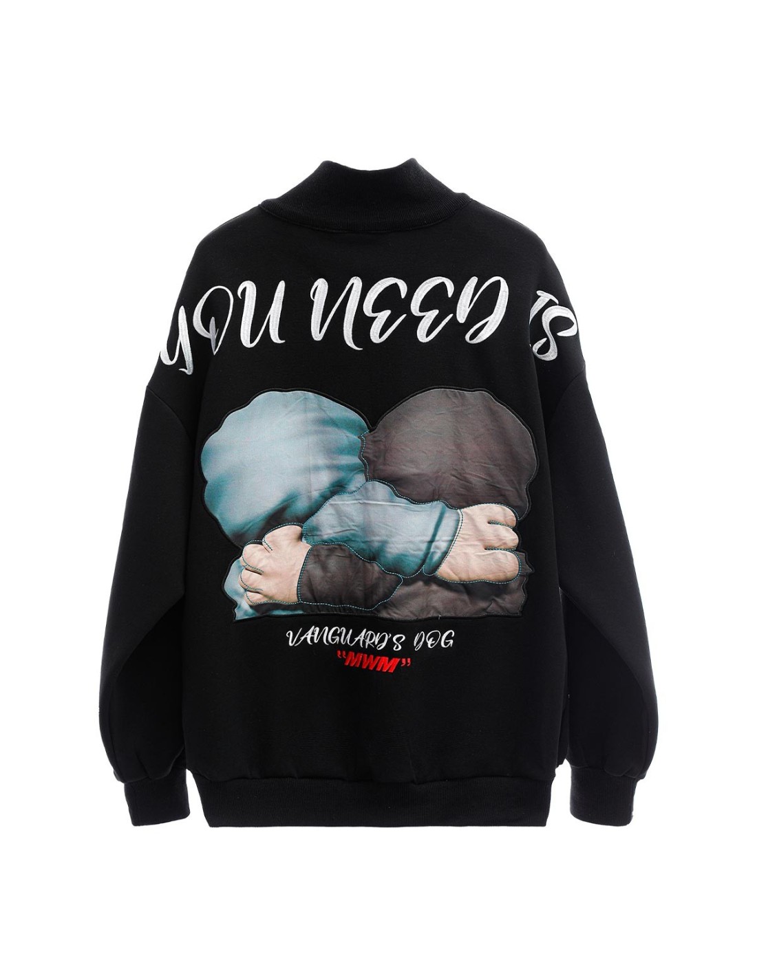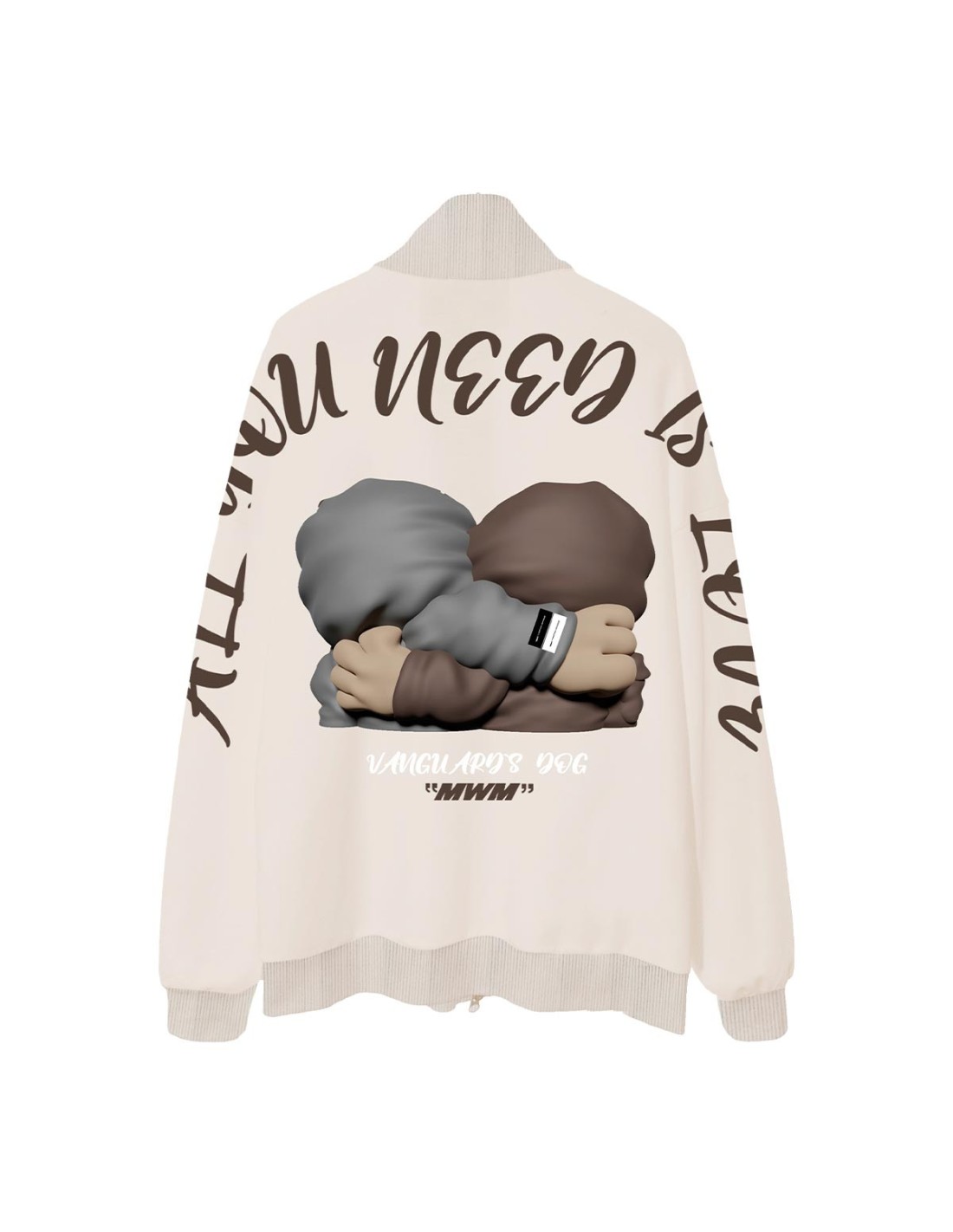 Mod Wave MovementLa Chaqueta Vanguard's Dog de Mod Wave Movement destaca por su impactante estampado Vanguard's Dog acompañado del lema "All You Need Is Love". Confeccionada en una mezcla de 65% algodón, 30% poliéster y 5% elastano, ofrece comodidad y durabilidad. Cuenta con cierre de cremallera frontal y logo en parche en el pecho que refuerzan su estilo urbano. Una prenda única que combina mensaje y diseño con personalidad.