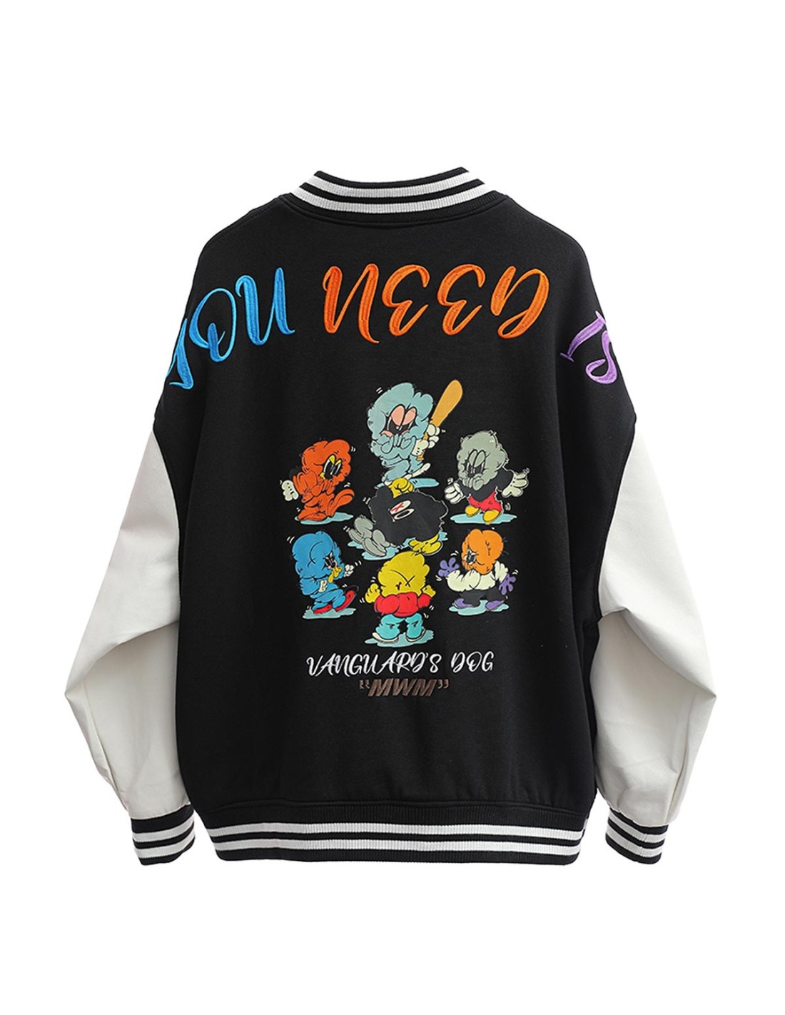 Mod Wave MovementLa Chaqueta Bomber Vanguard's Dog de Mod Wave Movement combina estilo atrevido y mensaje con personalidad. Su espalda luce un impactante estampado con el gráfico Vanguard's Dog acompañado de la frase All you need is love, que añade un toque distintivo y rebelde. Las mangas en contraste realzan el diseño y aportan un efecto visual único. Ideal para destacar en cualquier ocasión con una prenda que mezcla arte, moda y actitud.