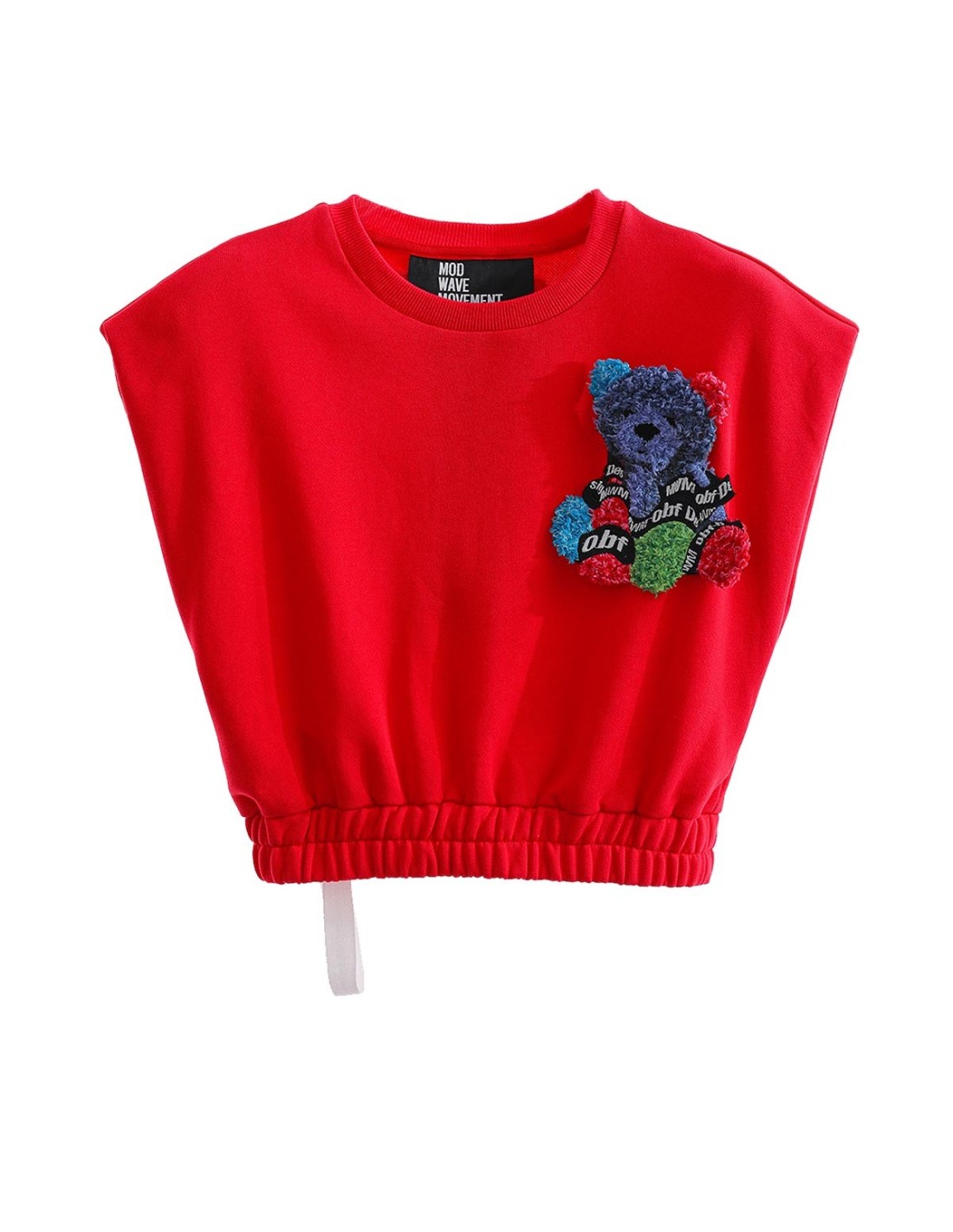 Mod Wave MovementEl Crop Top Teddy de Mod Wave Movement destaca por su llamativo parche teddy multicolor en la parte frontal, que le da un toque divertido y original. Su diseño sin mangas y corte cropped lo hacen ideal para looks frescos y desenfadados. En la espalda, una etiqueta efecto piel añade un detalle distintivo de la marca. Confeccionado en 100% algodón, ofrece máxima comodidad con estilo urbano.