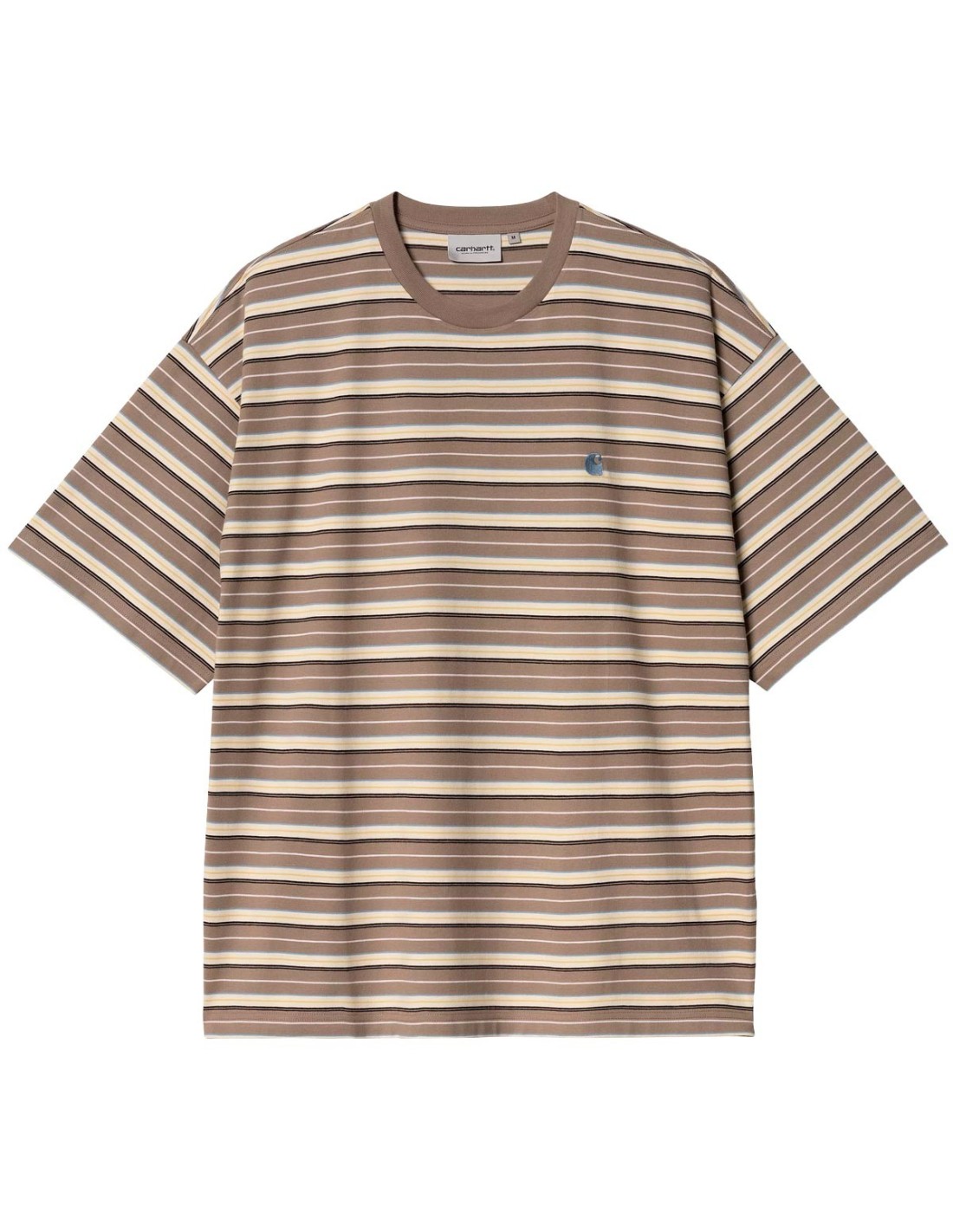 La camiseta S/S Nathan de Carhartt WIP presenta un diseño de rayas horizontales en tonos tierra, aportando un toque cálido y natural. Con cuello redondo y manga corta, ofrece un estilo clásico y cómodo. Fabricada en 100% algodón, garantiza suavidad y transpirabilidad. Su ajuste holgado proporciona libertad de movimiento y un look relajado. Ideal para el día a día con un toque de estilo atemporal.