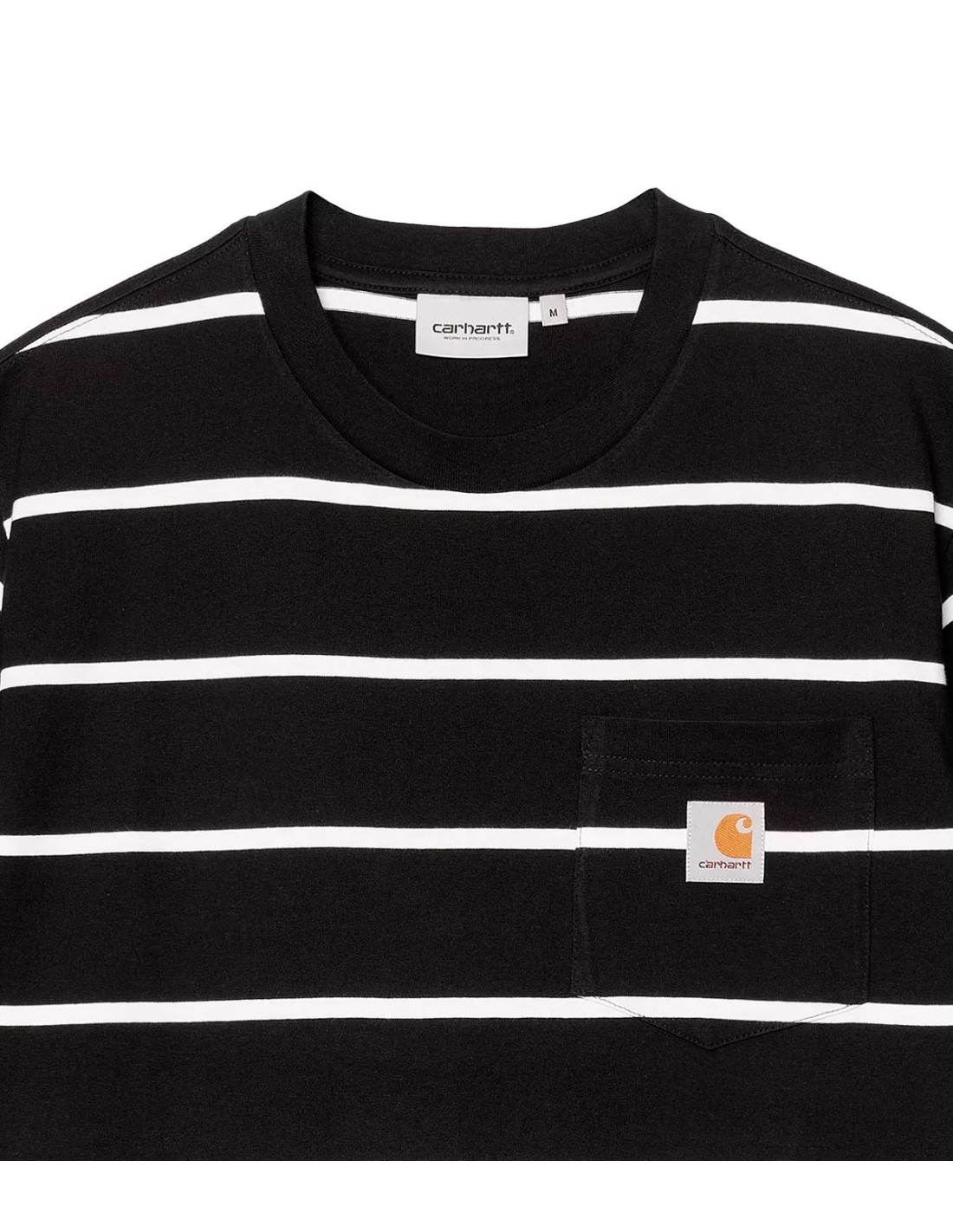 Carhartt WIPLa camiseta S/S Aiken Pocket de Carhartt WIP en color negro con rayas horizontales blancas ofrece un diseño clásico y estilizado. Cuenta con cuello redondo y manga corta para un ajuste cómodo y fresco. El logo con bolsillo en el pecho añade un toque funcional y distintivo. Fabricada al 100% en algodón, asegura suavidad y comodidad durante todo el día. Ideal para un look casual con un toque moderno y elegante.