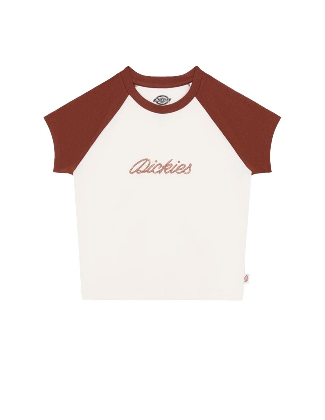 DickiesCamiseta Rope S/S de Dickies en color beige con mangas cortas en marrón chocolate para un contraste único. El logo Dickies en marrón destaca en el pecho, aportando un toque distintivo. Su corte entallado ajusta perfectamente al cuerpo, brindando comodidad y estilo. Confeccionada 100% en algodón, asegura suavidad y frescura durante todo el día. Ideal para un look casual y moderno con un toque de color.