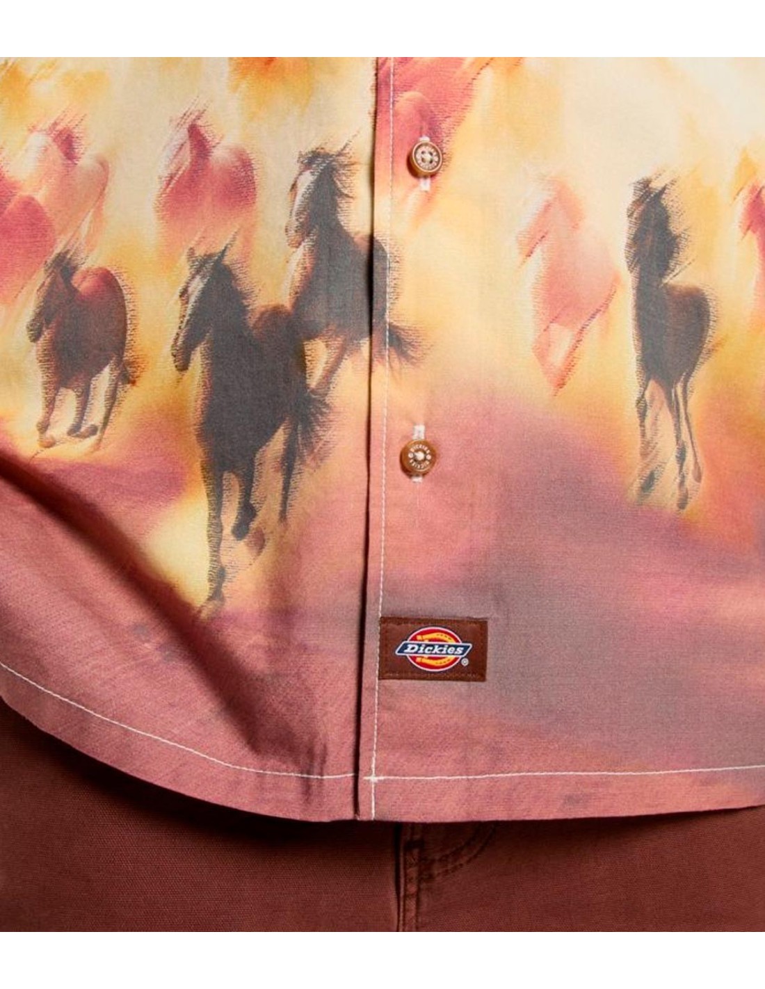 DickiesLa camisa Running Wild de Dickies en color beige es perfecta para quienes buscan un estilo relajado y único. Con manga corta y un estampado de caballos salvajes, aporta un toque de frescura y personalidad. Fabricada en 100% viscosa, ofrece una textura suave y cómoda para todo el día. Su corte relajado proporciona libertad de movimiento y un ajuste holgado. Ideal para un look casual y con carácter, sin perder la comodidad.