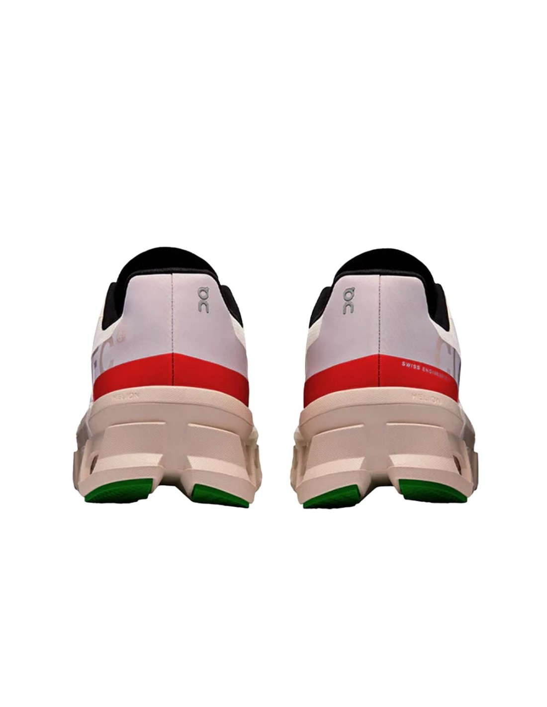 Las zapatillas Cloudmonster de On Running combinan un diseño innovador con alto rendimiento. En color blanco con suela rosa, talón rojo y logo en negro, destacan por su estilo moderno y llamativo. Incorporan una gran amortiguación que brinda una pisada suave y reactiva en cada paso. Ideales para correr o para un uso diario con máxima comodidad.