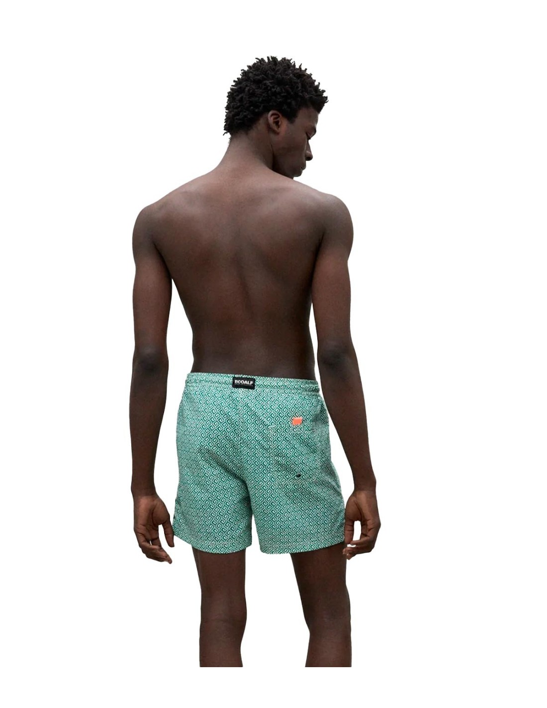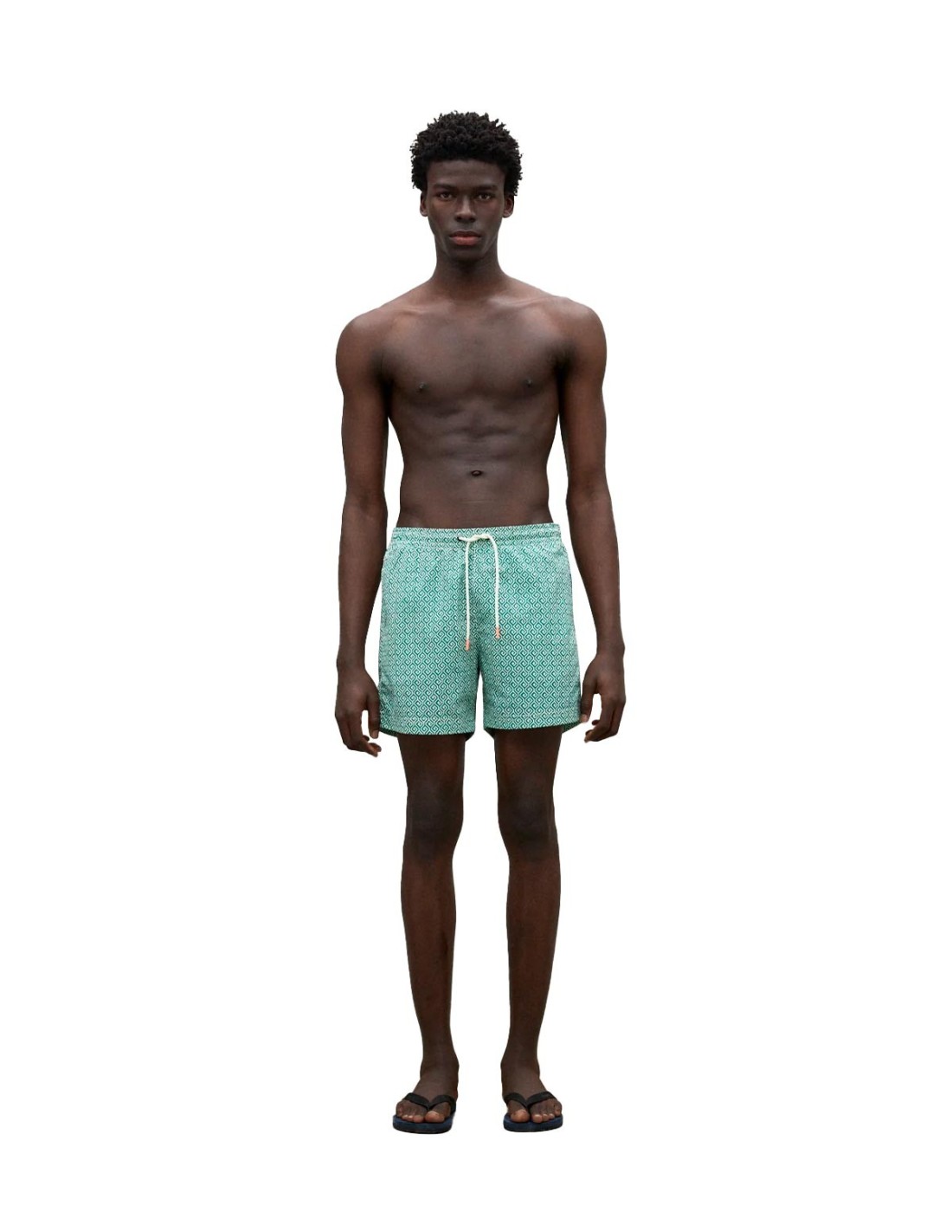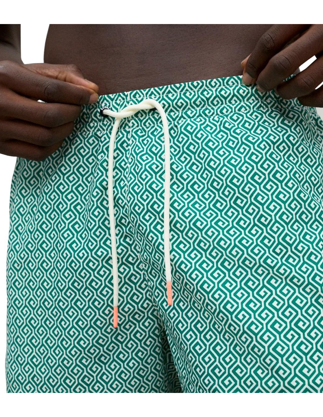El bañador Bequia de ECOALF presenta un elegante estampado geométrico en tonos verde y blanco, ideal para un estilo veraniego con personalidad. Está confeccionado en tejido principal 100% poliamida reciclada, apostando por la sostenibilidad sin renunciar al confort. Su corte regular y la cintura elástica con cordones aseguran un ajuste cómodo y versátil. Dispone de bolsillos laterales tipo francés y un bolsillo trasero con cierre de velcro. Una prenda funcional y responsable para disfrutar del agua con estilo.