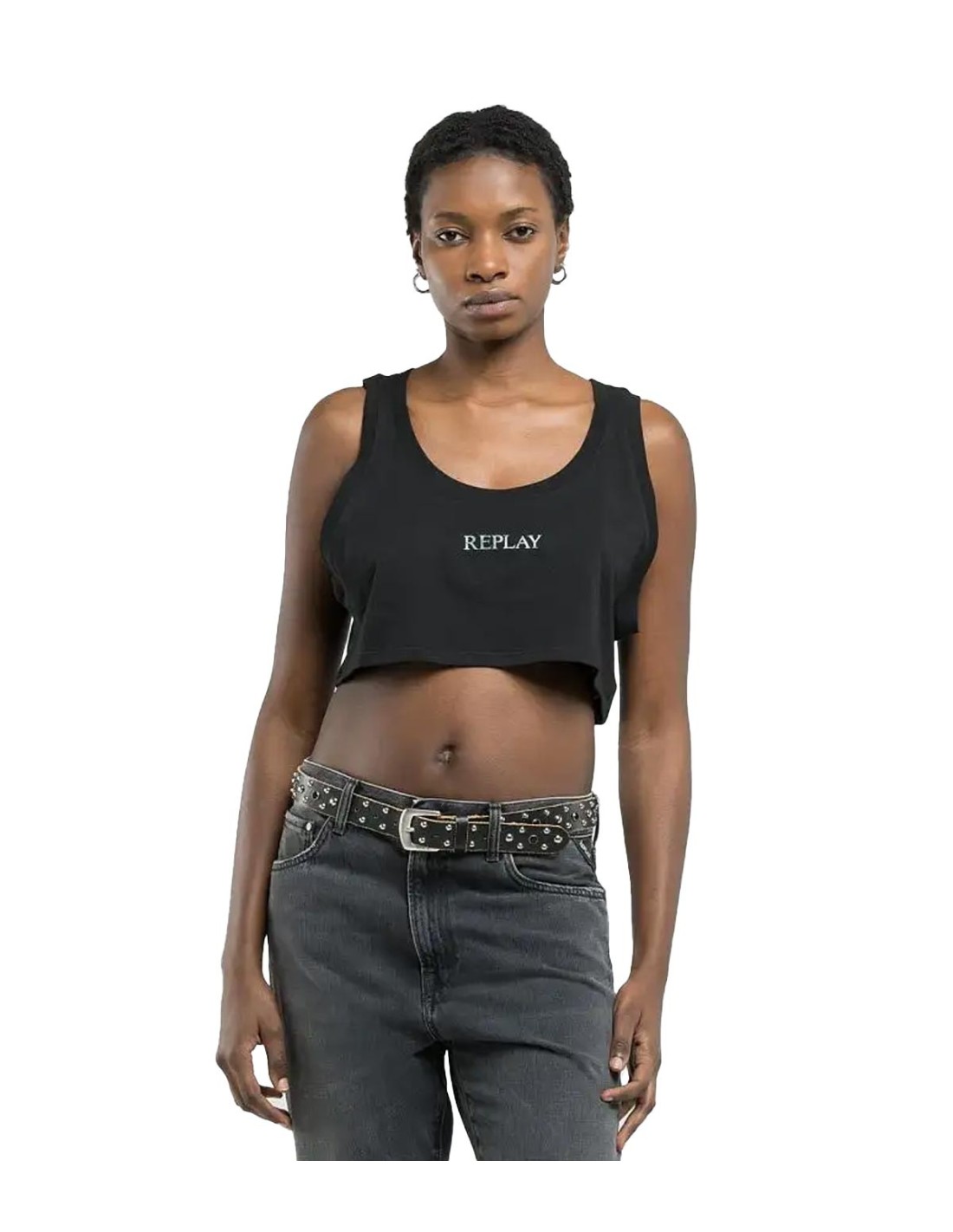 El Top Corto con Estampado de Logo de Replay es una prenda cómoda y con actitud, perfecta para un look casual y urbano. Confeccionado en 100% algodón, presenta un diseño en color negro con tirantes y cuello redondo. El corte corto realza la silueta, mientras que el logo estampado en el pecho añade un toque icónico. Ideal para combinar con jeans, shorts o faldas de tiro alto.
