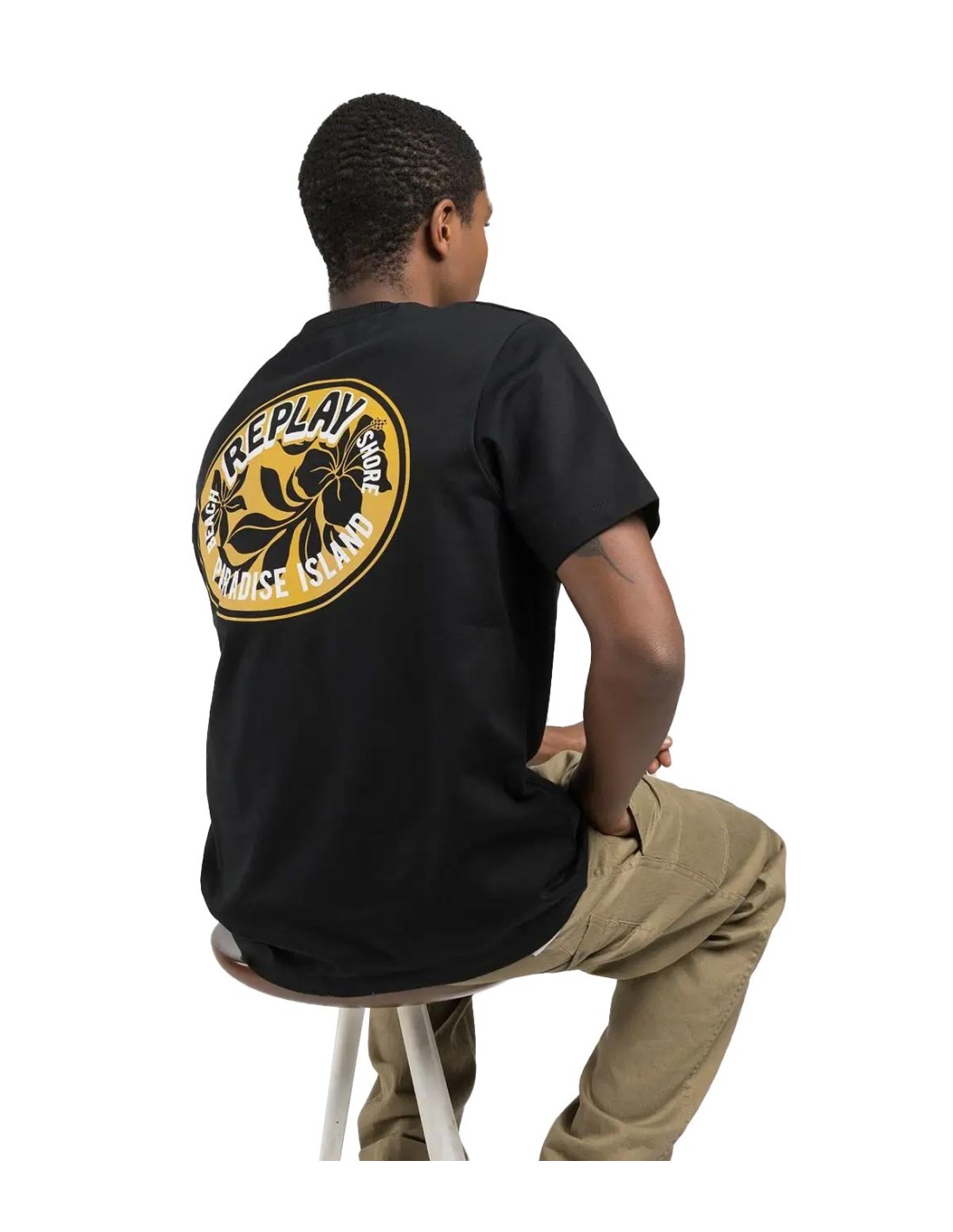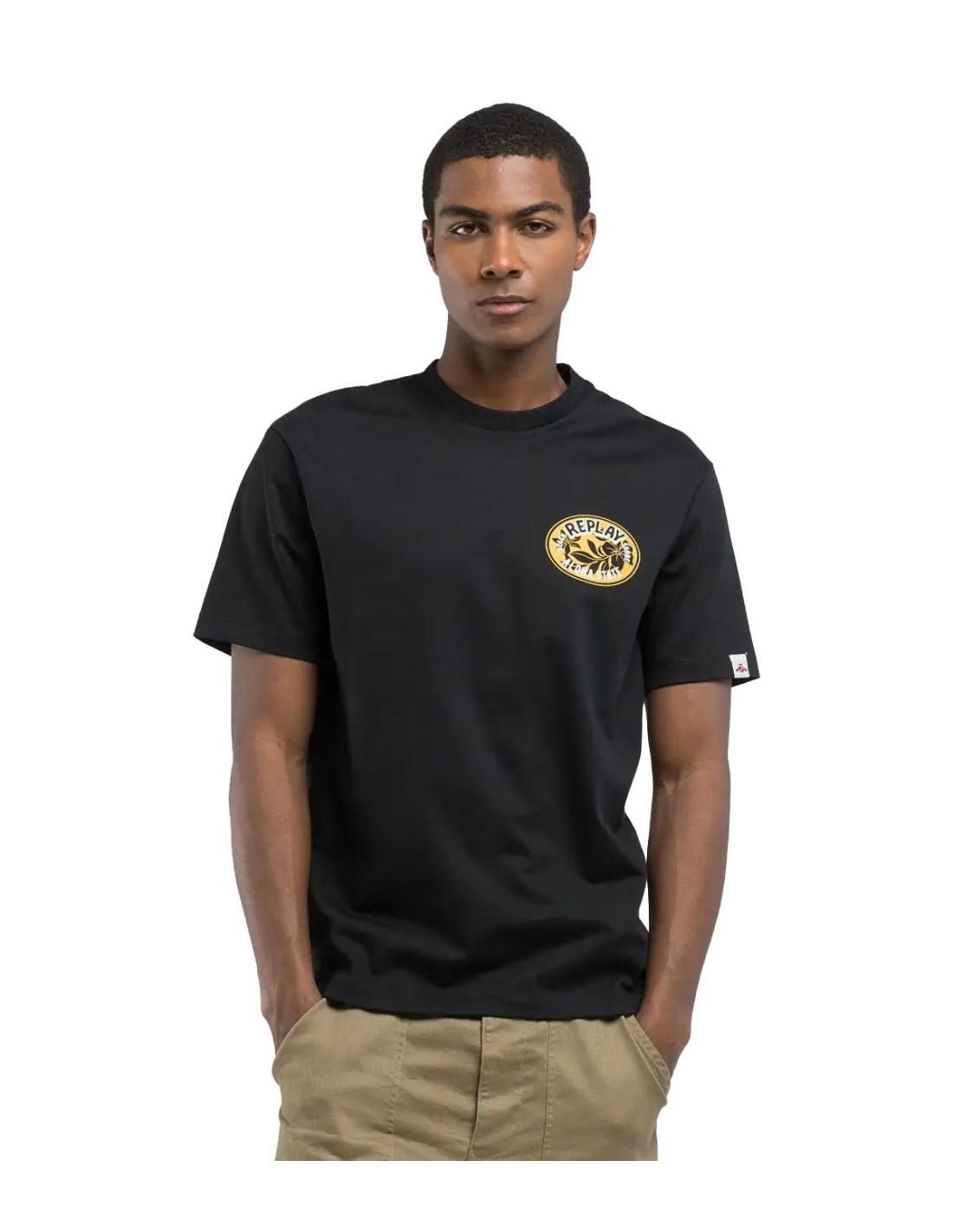 ReplayLa camiseta con estampado tropical de Replay en color negro es una prenda relaxed fit ideal para un estilo casual con personalidad. Confeccionada en punto de algodón 100%, ofrece suavidad y durabilidad excepcionales. Destaca por un estampado efecto parche con plantas tropicales y letras en el pecho, que se repite en versión maxi en la espalda. Se completa con el icónico logotipo de archivo en la manga, aportando un toque distintivo.