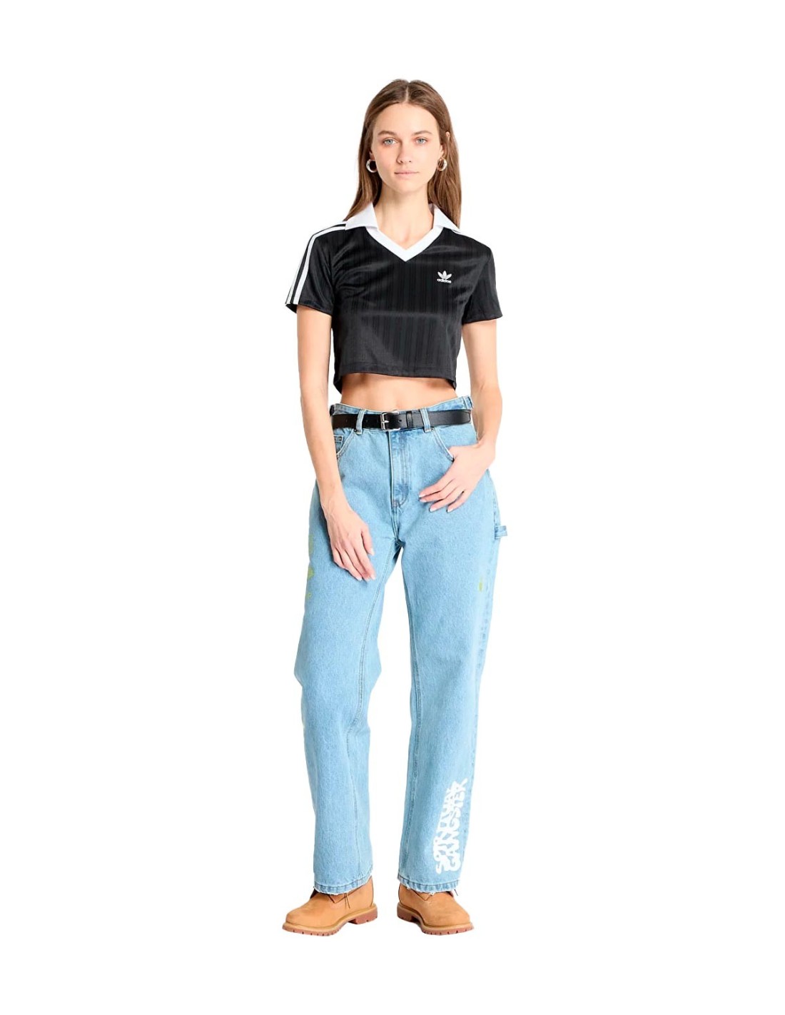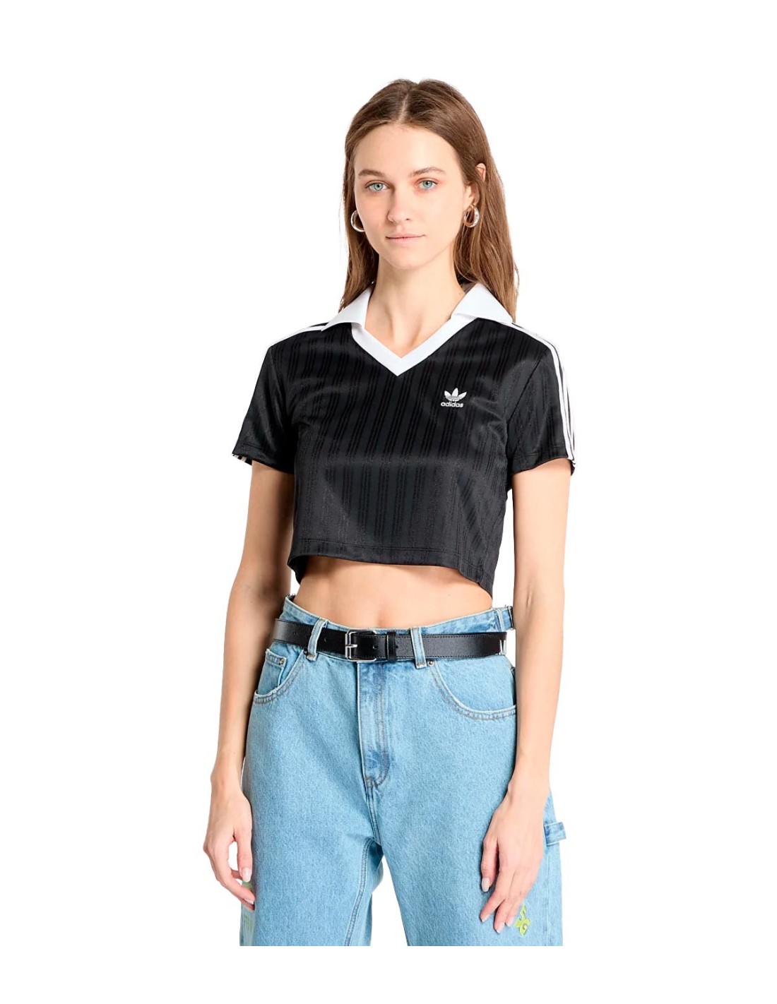 La Camiseta Cuello de Polo V-Neck de Adidas en color negro presenta un elegante cuello de polo blanco que añade un toque sofisticado. Su manga corta y corte cropped ofrecen un estilo moderno y cómodo. Ideal para un look casual y streetwear con un toque clásico. Perfecta para combinar con cualquier prenda y destacar tu estilo único.