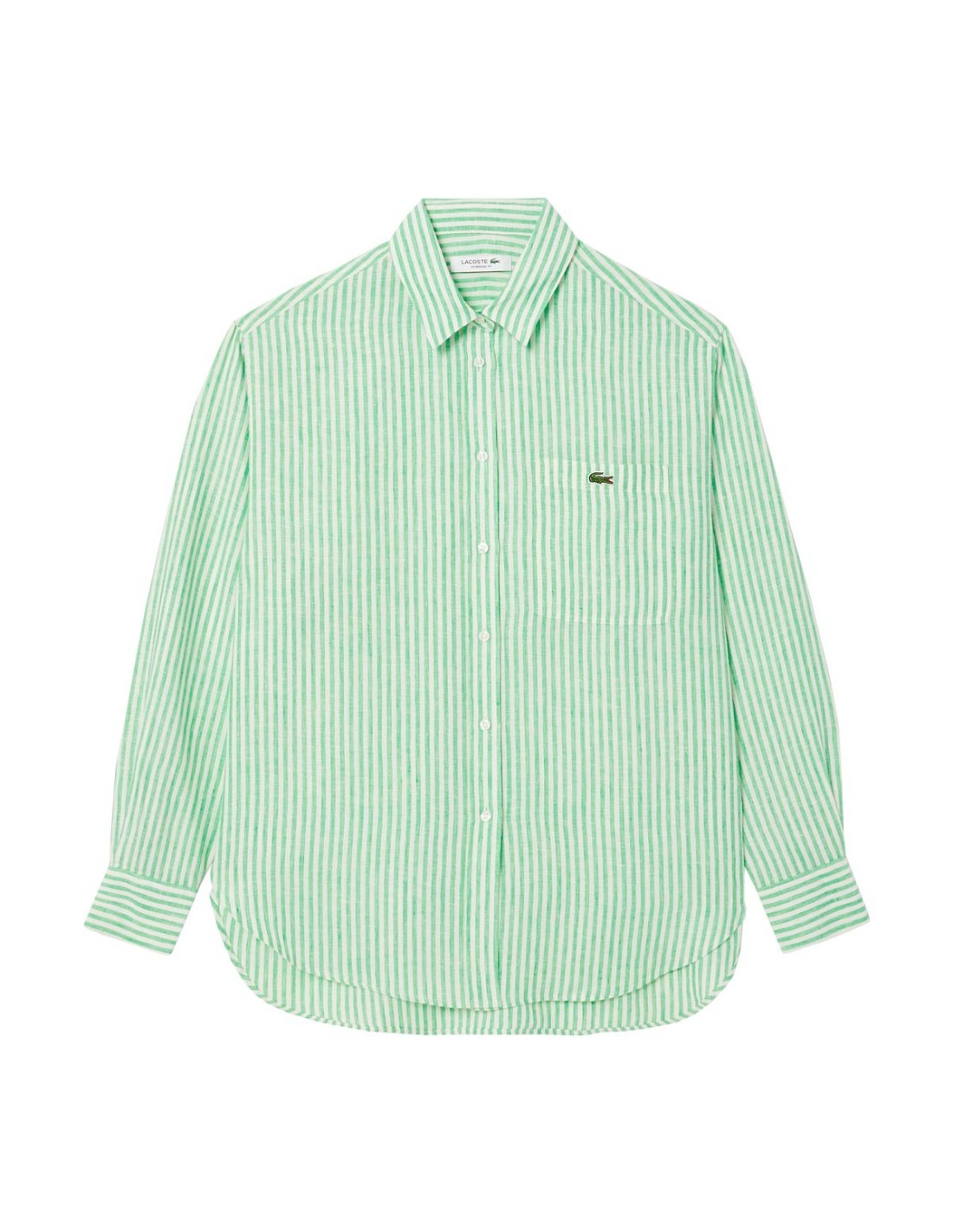 Lacoste - Camisa A Rayas Oversize Con Logo