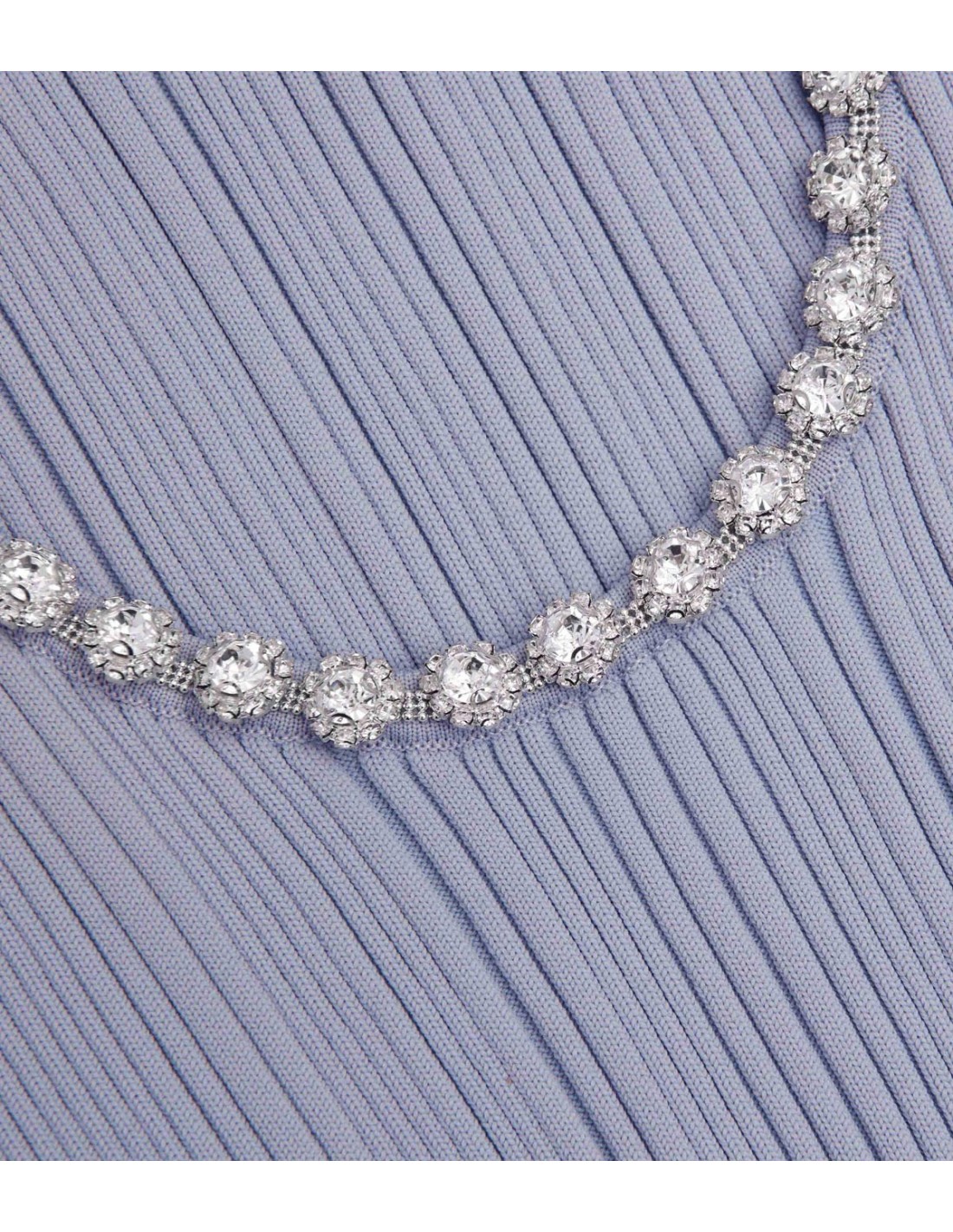 Self PortraittEl vestido de punto acanalado de Self-Portrait presenta un elegante cuello redondo con piedras brillantes incrustadas que aportan un toque de glamour. Sus tirantes finos y diseño de falda acampanada ofrecen una silueta femenina y moderna. Ideal para lucir con estilo en cualquier ocasión.