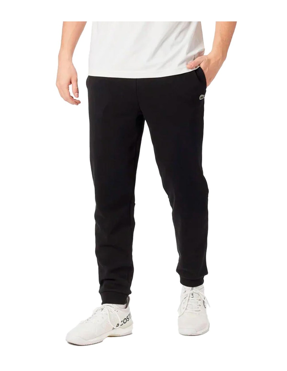 El Pantalón de Chándal con Logo de Lacoste en color negro está confeccionado en forro polar de algodón orgánico, ofreciendo máxima suavidad y calidez. Su ajuste cónico y bajo elástico garantizan un estilo moderno y cómodo. Cuenta con cordón interior para un ajuste personalizado y el icónico cocodrilo bordado en la pierna izquierda que resalta su autenticidad. La tela principal 100% algodón asegura transpirabilidad y durabilidad. Perfecto para un look casual y sostenible.