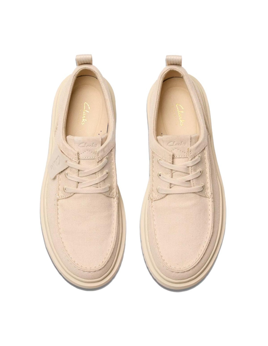 ClarksLos zapatos Polden Moc de Clarks, en color crema, combinan estilo casual y funcionalidad. Presentan una parte superior de lona premium con detalles en gamuza, ideal para un look versátil. Su diseño con cordones y patrón tipo mocasín los hace perfectos para cualquier ocasión. Incorporan una plantilla Contour Cushion extraíble para comodidad duradera. La suela C360 EVA es ultra suave y ligera, brindando una pisada cómoda todo el día.