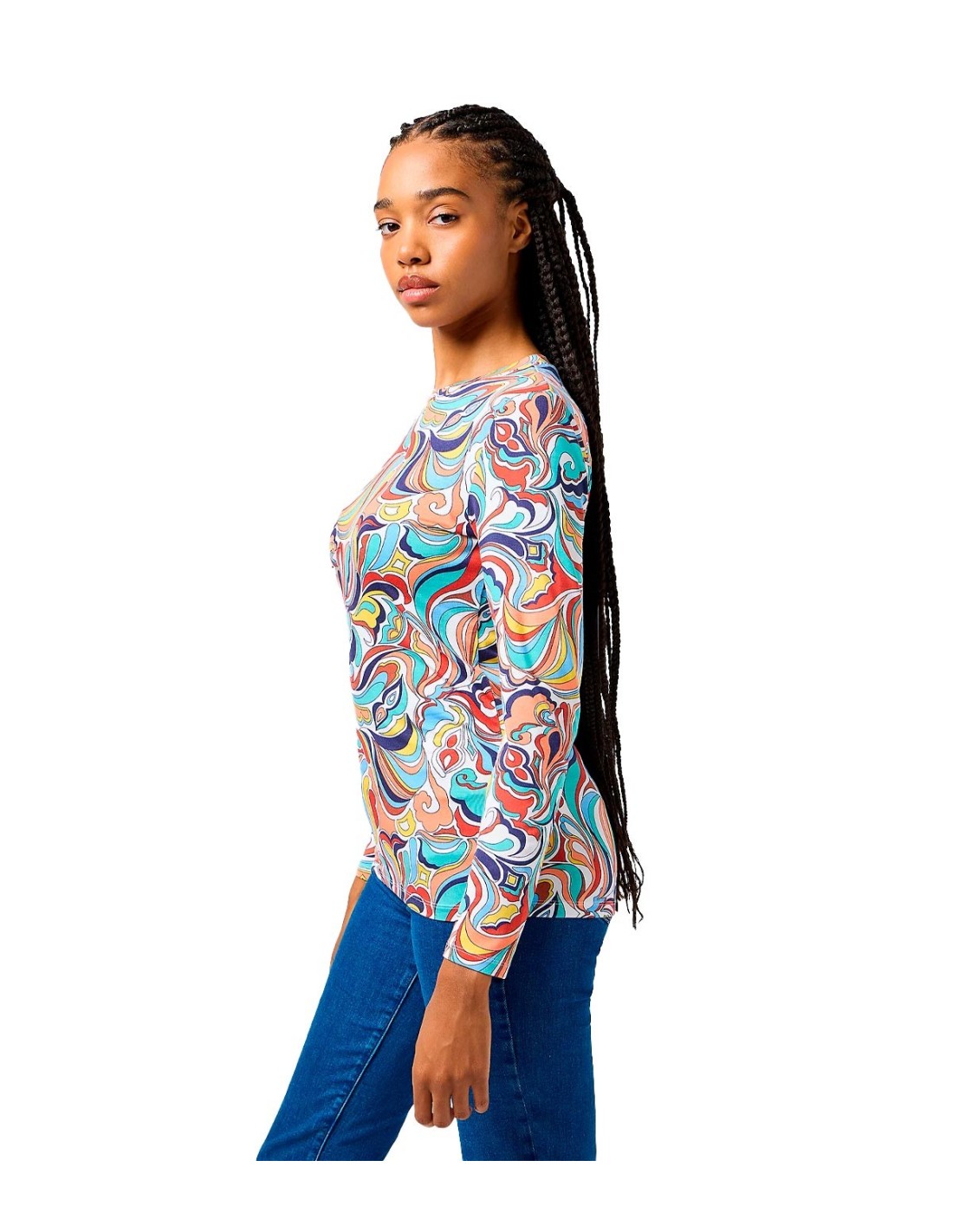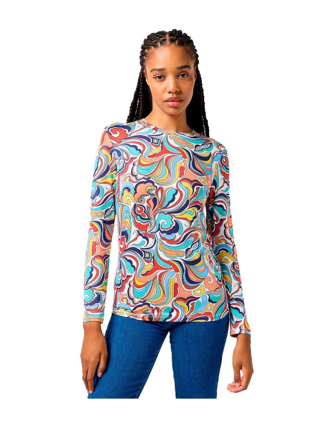 La camiseta Latigo de Wrangler en multicolor es una opción vibrante y elegante para cualquier ocasión. Con cuello redondo y manga larga, ofrece un estilo clásico y atemporal. Su corte ajustado resalta la figura, brindando un look favorecedor. Confeccionada en un 95% de viscosa y 5% elastano, garantiza suavidad y elasticidad. Perfecta para un estilo moderno y cómodo durante todo el día.