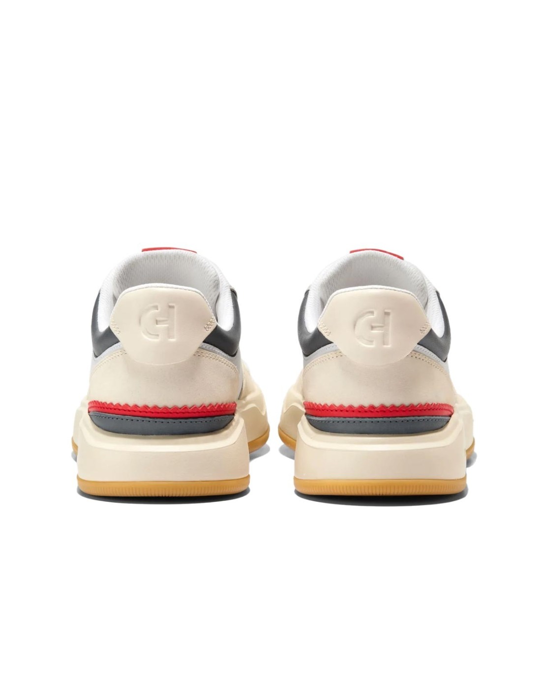 Zapatillas GrandPrø Crossover de Cole Haan con una llamativa parte superior de cuero en bloques de color White, White Cap, Blue Wing Teal y Goji Berry. Presentan un sistema de cordones con siete ojales para un ajuste personalizado y seguro. La suela de goma, con patrón de tracción inspirado en el baloncesto, garantiza agarre y estabilidad. Incorporan entresuela GRANDFØAM para comodidad y soporte duradero. La plantilla acolchada ofrece una pisada suave y cómoda durante todo el día.