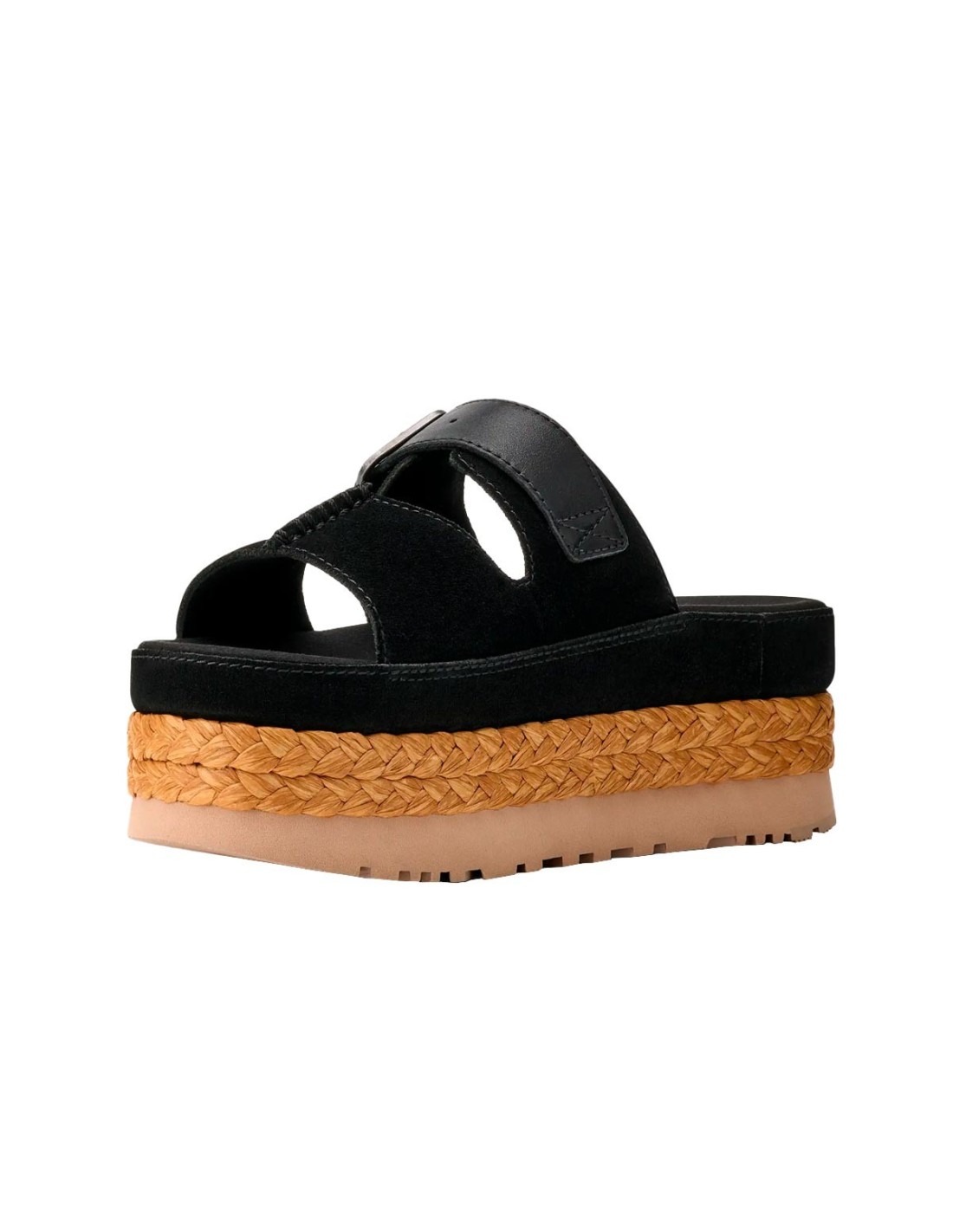 UggLas Sandalias Aubrey de UGG en color negro destacan por su diseño elegante con talón abierto y una parte superior combinada de ante y cuero. Su inserto elástico en la parte interior de la pierna y la correa de empeine ajustable aseguran un ajuste perfecto. La suela de EVA, fabricada a partir de caña de azúcar, es ligera y ecológica, mientras que la plataforma de 5,1 cm aporta altura y estilo. Confort y sofisticación en cada paso, perfectas para cualquier ocasión. ¡Un imprescindible para tu colección de verano!