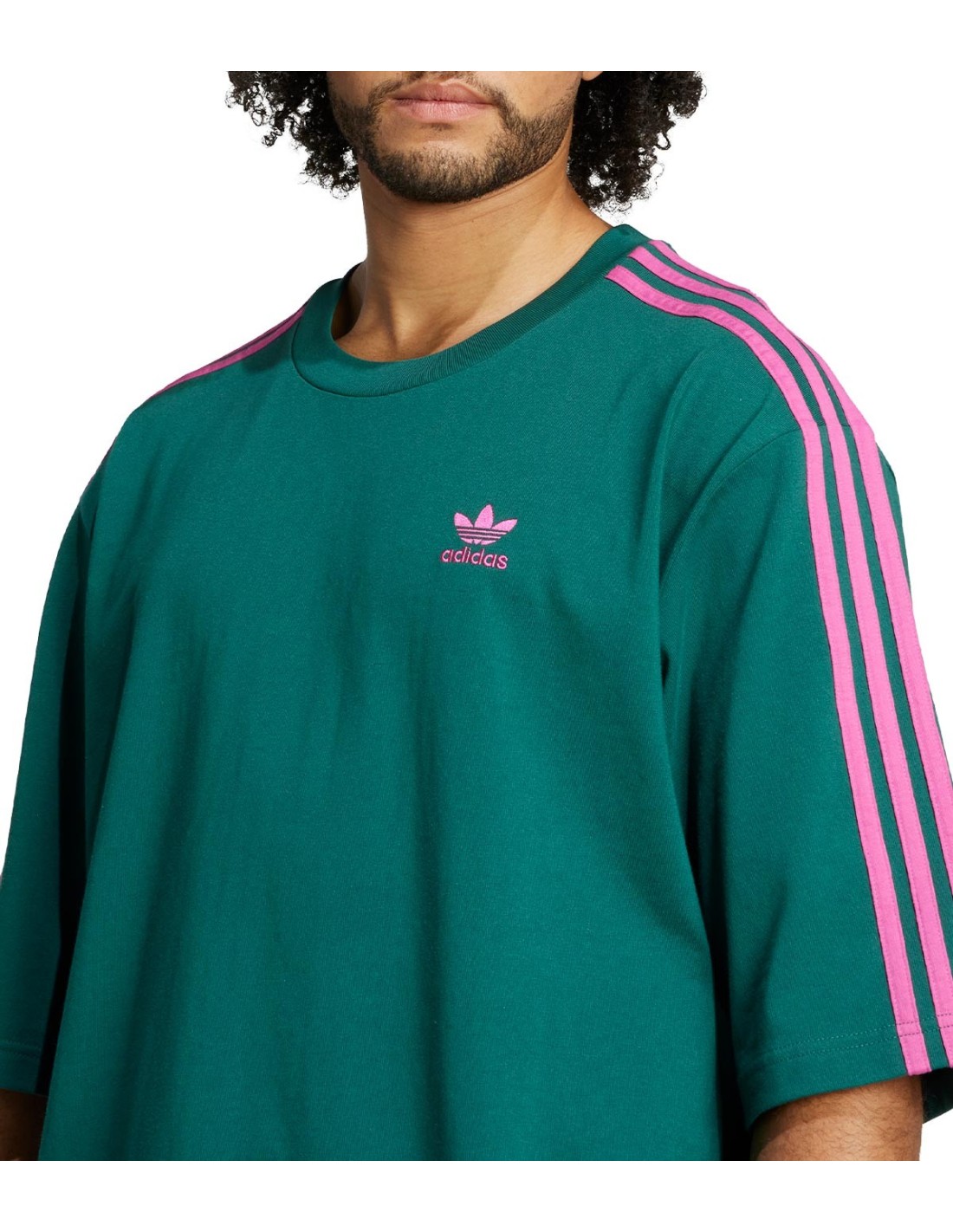adidasLa Camiseta Oversize con Logo de Adidas destaca por su estilo urbano y cómodo. De color verde , luce el icónico trébol de Adidas al frente y franjas rosas sobre los hombros que añaden un toque retro y original. Su diseño oversize con manga corta caída y cuello redondo ofrece un ajuste relajado ideal para el día a día. Perfecta para quienes buscan un look casual con identidad deportiva.
