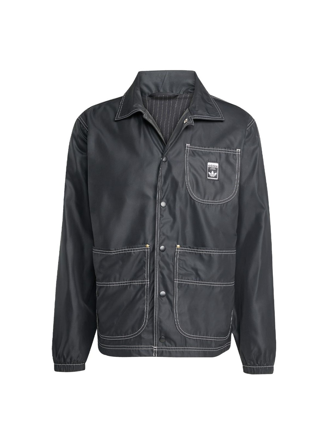 adidasChaqueta Con Logo de Adidas en color negro, inspirada en la clásica chaqueta Coach con un toque urbano y funcional. Confeccionada en un tejido resistente, incorpora cierre frontal con botones a presión y un cuello de camisa que le aporta un aire estructurado. Su diseño incluye varios bolsillos frontales ideales para llevar lo esencial. Una prenda versátil que combina estilo y practicidad con el sello de Adidas.