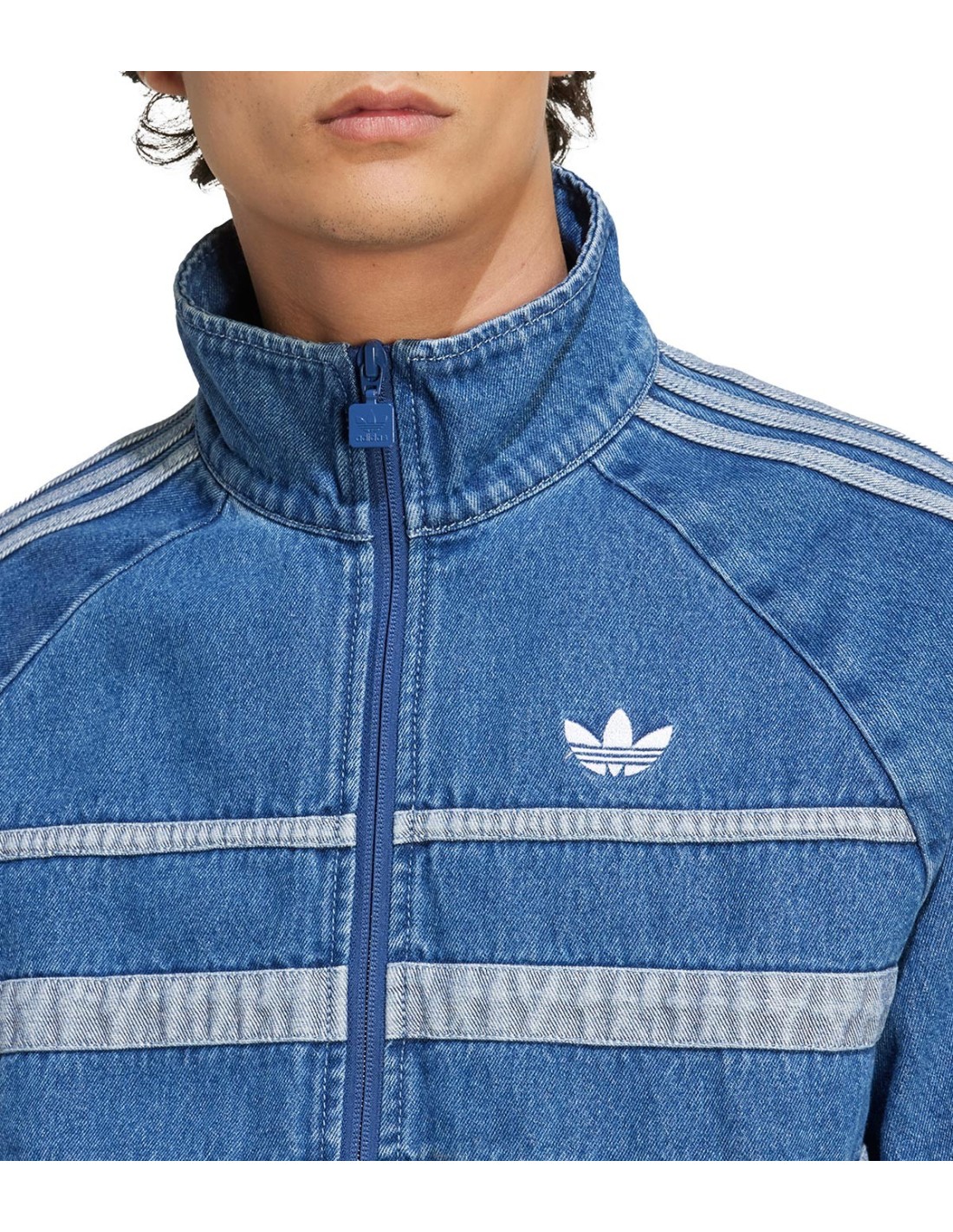 Chaqueta First Denim de Adidas en color azul que reinventa una silueta clásica con un toque deportivo y moderno. Confeccionada en resistente tejido denim, incorpora el inconfundible estilo de las 3 bandas a lo largo de las mangas. Su cuello alto añade carácter y protección, ideal para un look urbano y versátil. Una prenda que combina la herencia del denim con la identidad única de adidas.