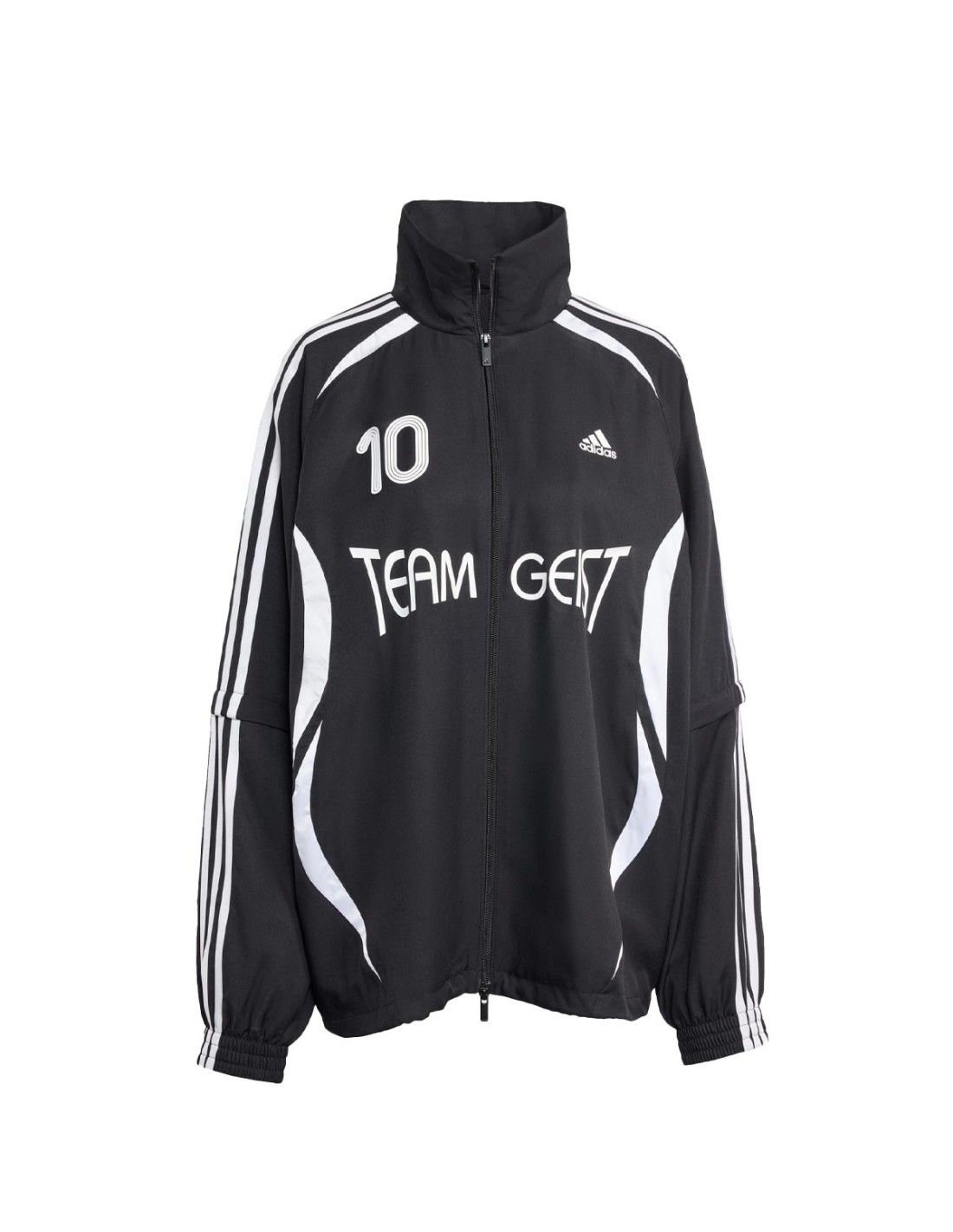 adidasLa Chaqueta Tracktop de Adidas en color negro ofrece un diseño versátil con mangas largas desmontables, decoradas con las clásicas stripes blancas. El trébol en el pecho y el número 10 en la espalda le dan un toque icónico y deportivo. Su cuello alto añade estilo y protección en climas frescos. Ideal para un look urbano que combina funcionalidad y personalidad.