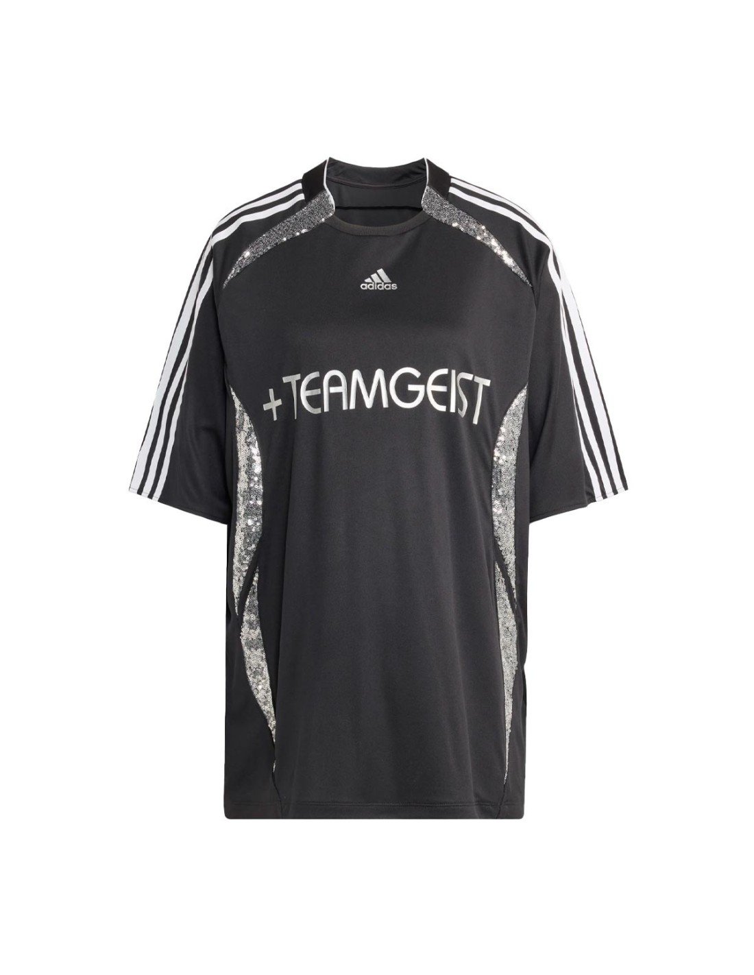 adidasLa Camiseta Con Logo de Adidas en color negro destaca por su diseño cómodo y moderno, con manga corta decorada con las icónicas stripes blancas. Presenta un cuello redondo y un logo ubicado justo debajo para un detalle sutil pero distintivo. Su corte holgado ofrece libertad de movimiento y un estilo relajado. Perfecta para un look casual y deportivo en cualquier ocasión.