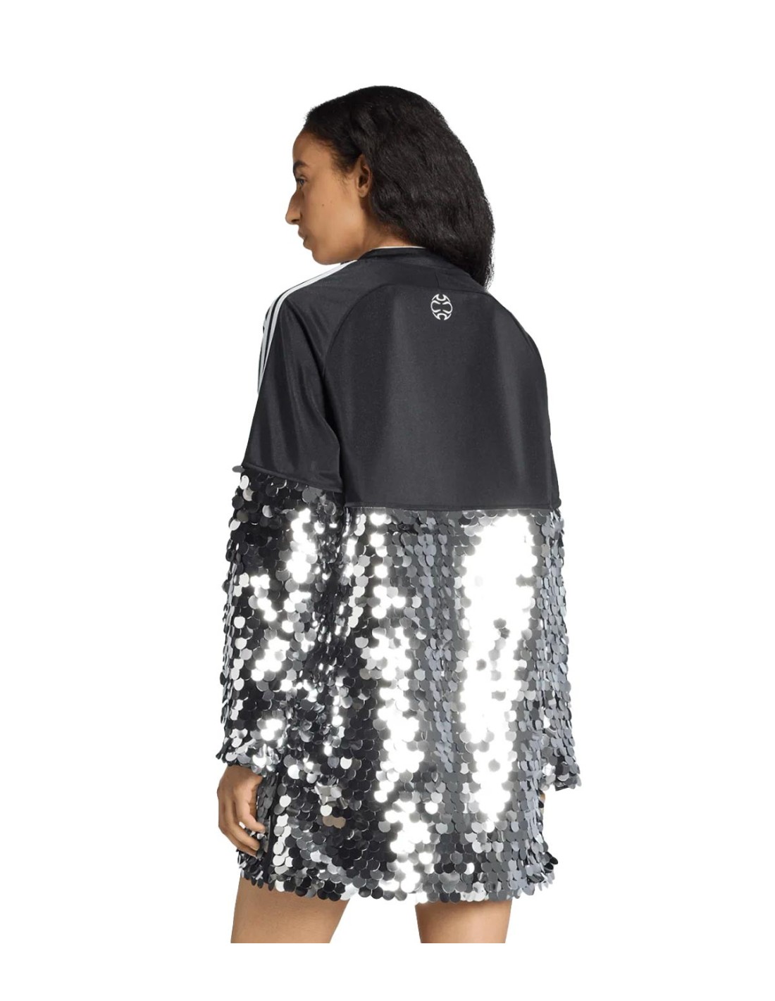 adidasEl Vestido Sequins de Adidas en color negro combina estilo y brillo con un diseño único que incluye falda y medias mangas decoradas con lentejuelas plateadas. Cuenta con cuello redondo y mangas largas con las clásicas stripes blancas, además del logo distintivo en el cuello. Esta prenda fusiona comodidad y elegancia para un look moderno y llamativo. Perfecto para destacar en cualquier ocasión especial con un toque deportivo.