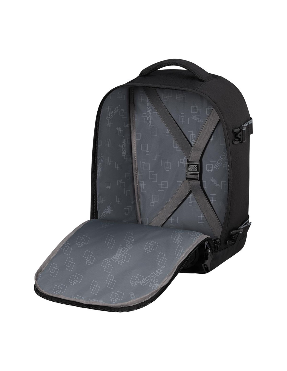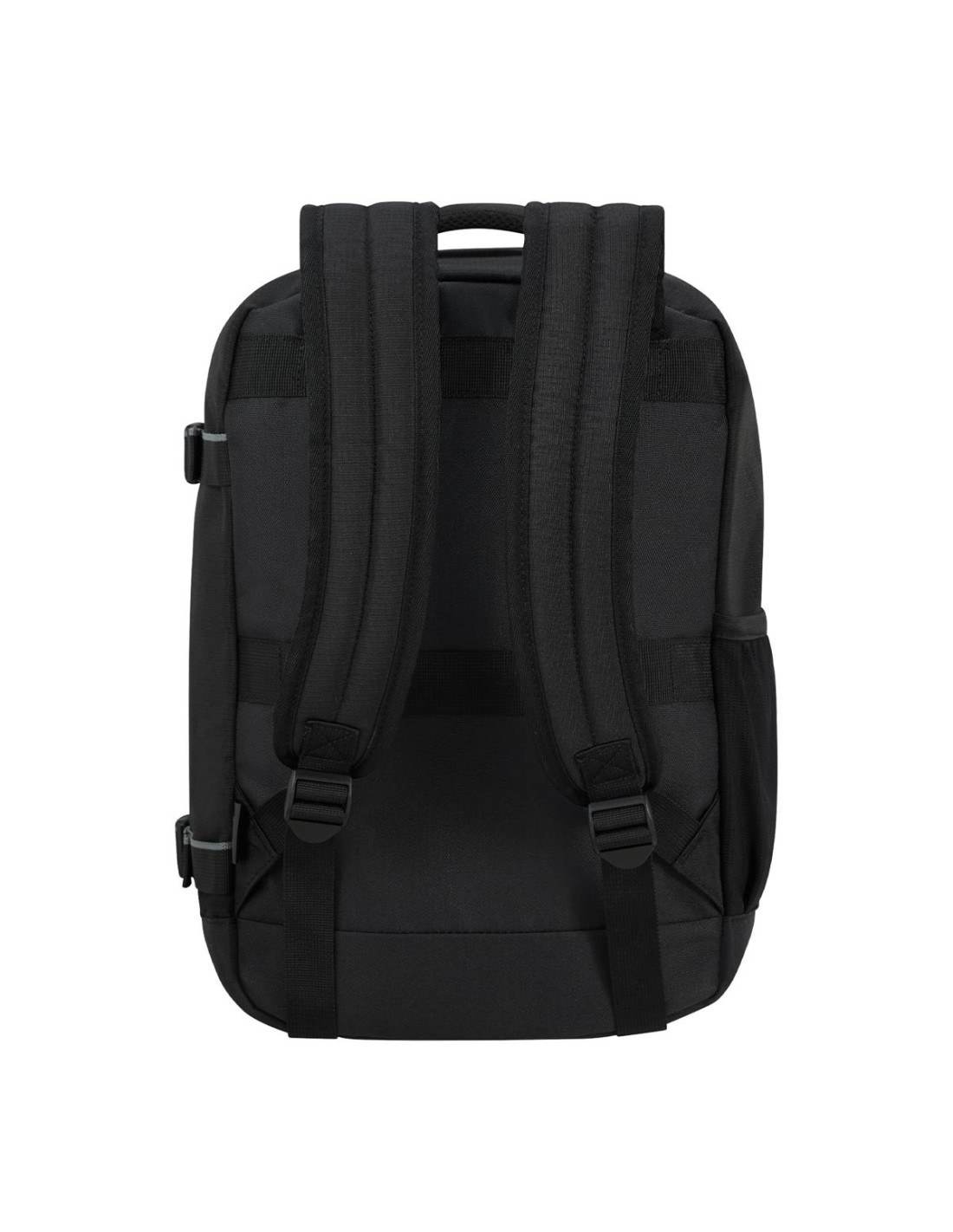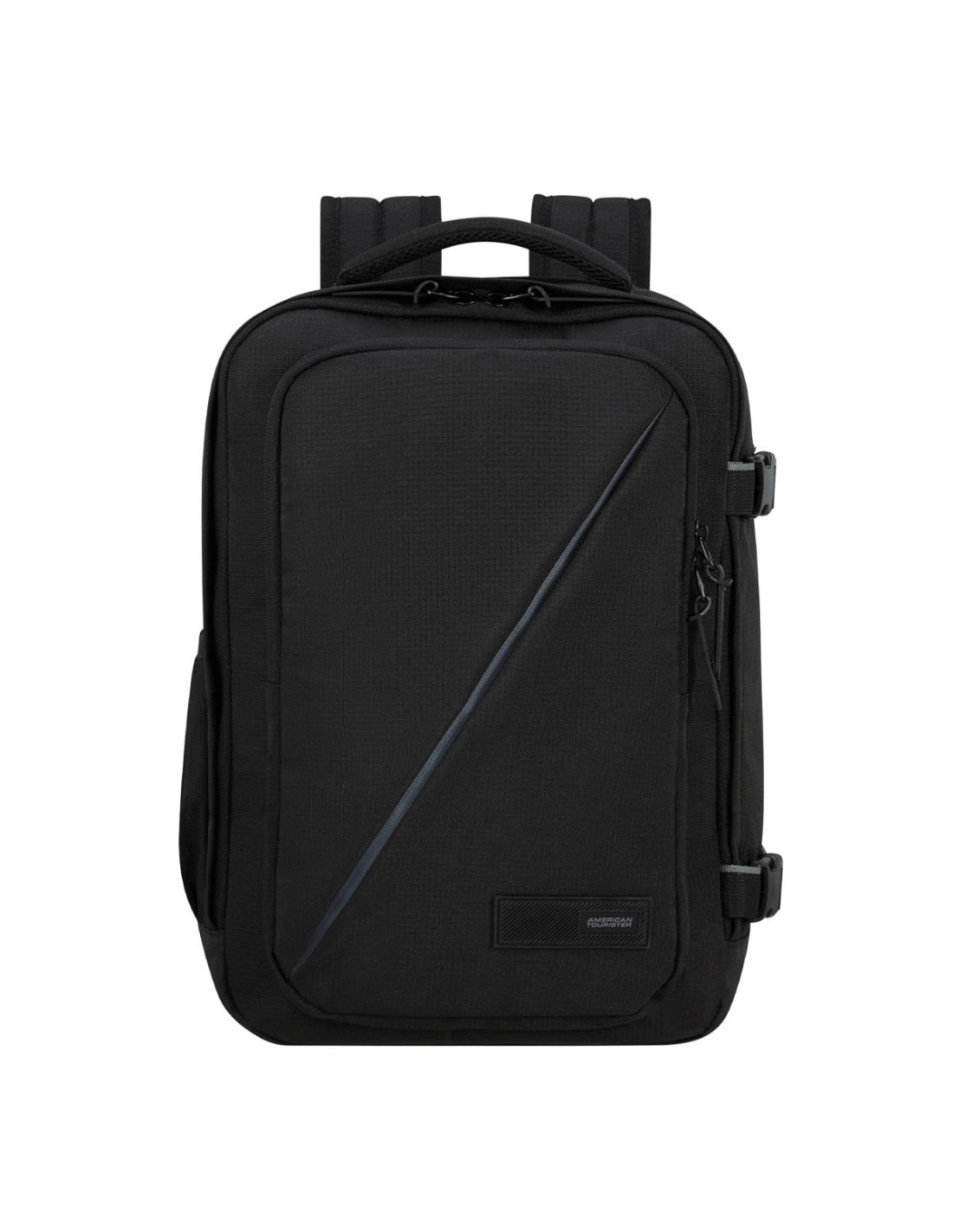 American TouristerLa mochila Take2cabin S de American Tourister en color negro es ideal para quienes buscan practicidad y estilo en sus desplazamientos. Con dimensiones de 40 x 25 x 20 cm y un volumen de 24,2 litros, ofrece un compartimento principal con cintas elásticas cruzadas para una sujeción segura. Incluye un bolsillo lateral para botella y un Smart Sleeve que permite acoplarla al tirador de una maleta. Fabricada con tecnología Recyclex™ a partir de botellas PET recicladas, es ligera (0,46 kg) y cumple con las dimensiones permitidas para equipaje de mano en la mayoría de aerolíneas.