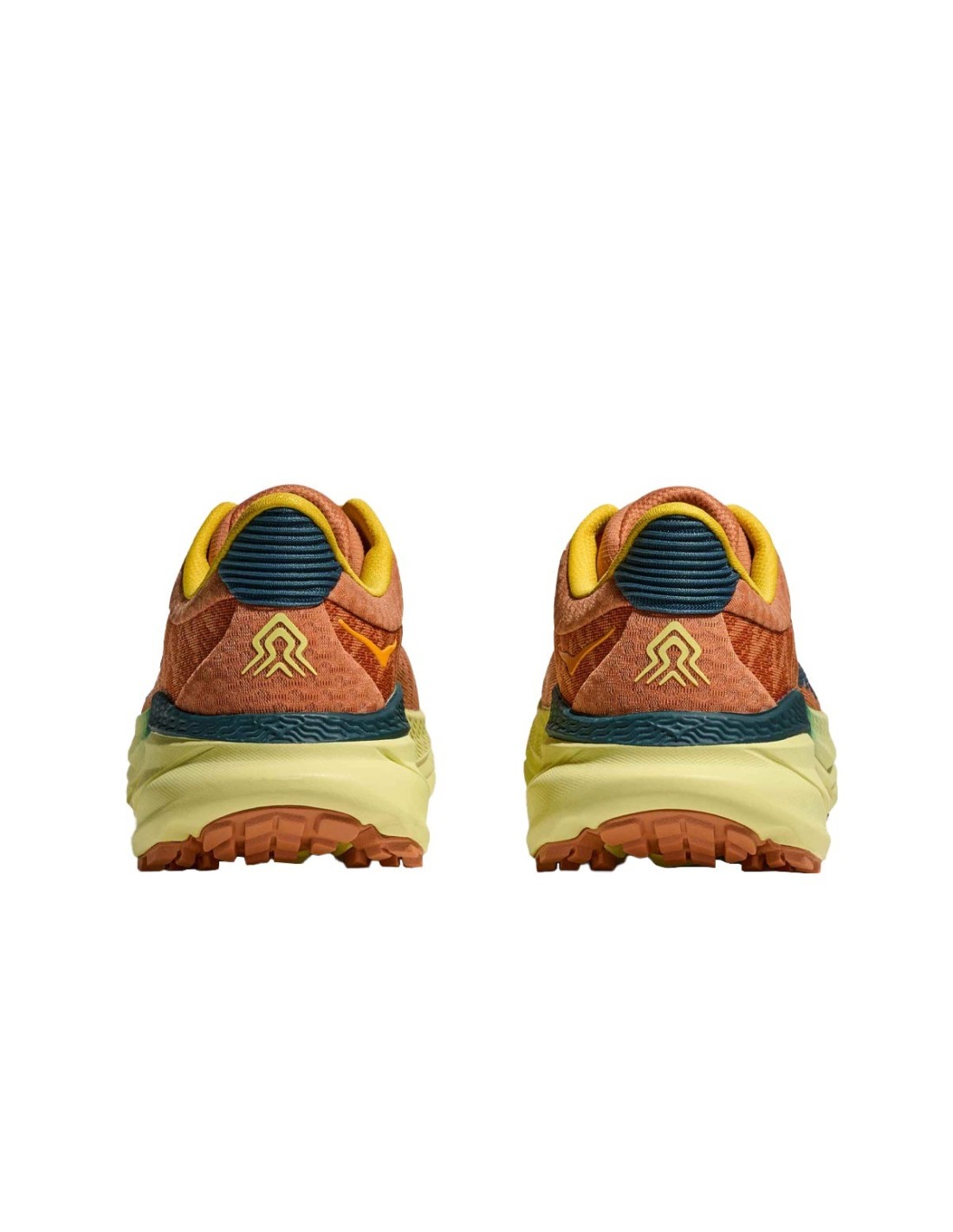 Las zapatillas Challenger 7 de Hoka combinan un diseño robusto y moderno en color marrón con una llamativa suela en color lima. Cuentan con cierre de cordones para un ajuste seguro y personalizado. La suela exterior de caucho ofrece tracción duradera en distintos terrenos. Además, su entresuela de espuma EVA proporciona una pisada suave y cómoda en cada paso.