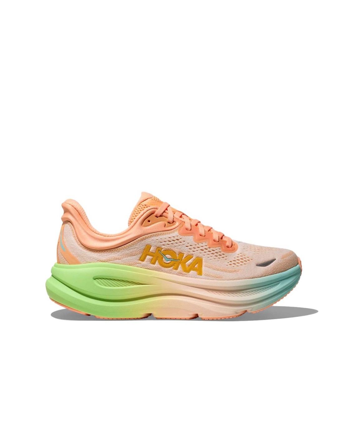 Las zapatillas Bondi 9 de Hoka están diseñadas para brindar el máximo confort al caminar. Presentan un atractivo color salmón con detalles en lima que las hace destacar con un estilo vibrante. Incorporan una plantilla de EVA moldeada que proporciona una excelente amortiguación y soporte durante todo el día. Ideales para caminatas largas y uso diario.