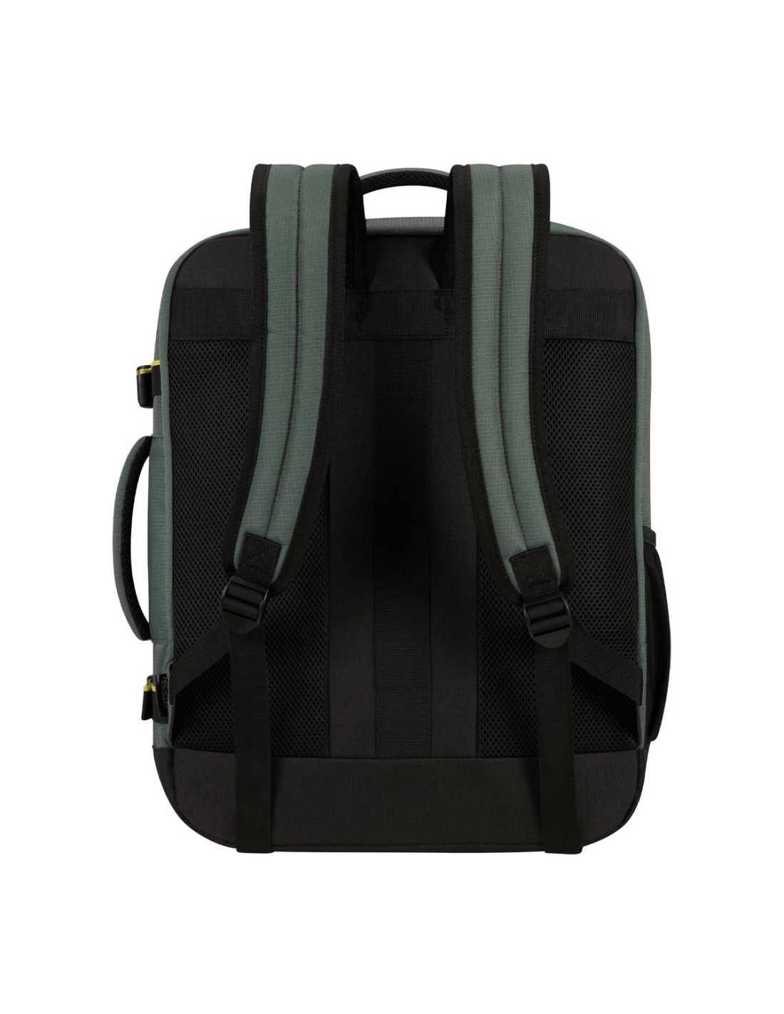 La mochila Take2cabin S de American Tourister en color verde es ideal para quienes buscan practicidad y estilo en sus desplazamientos. Con dimensiones de 40 x 25 x 20 cm y un volumen de 24,2 litros, ofrece un compartimento principal con cintas elásticas cruzadas para una sujeción segura. Incluye un bolsillo lateral para botella y un Smart Sleeve que permite acoplarla al tirador de una maleta. Fabricada con tecnología Recyclex™ a partir de botellas PET recicladas, es ligera (0,46 kg) y apta como equipaje de mano en la mayoría de aerolíneas.
