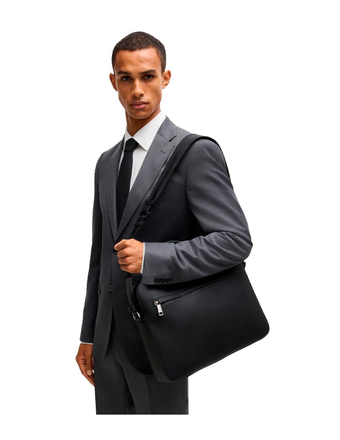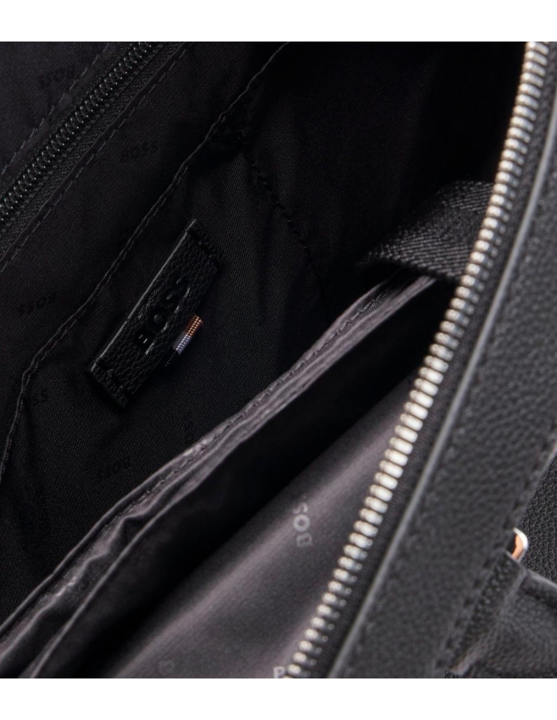 BossEste elegante maletín de Boss en color negro combina funcionalidad y estilo para el profesional moderno. Con dimensiones de 38 x 7 x 29 cm, ofrece un espacio compacto y organizado, ideal para llevar documentos y dispositivos esenciales. Cuenta con cierre superior de cremallera doble, un bolsillo interior con cremallera y acabados metálicos en color plateado brillante que realzan su diseño sofisticado. El logotipo exterior grabado añade un toque distintivo de la marca. Equipado con asas dobles, es perfecto para el día a día en la oficina o reuniones de negocios.