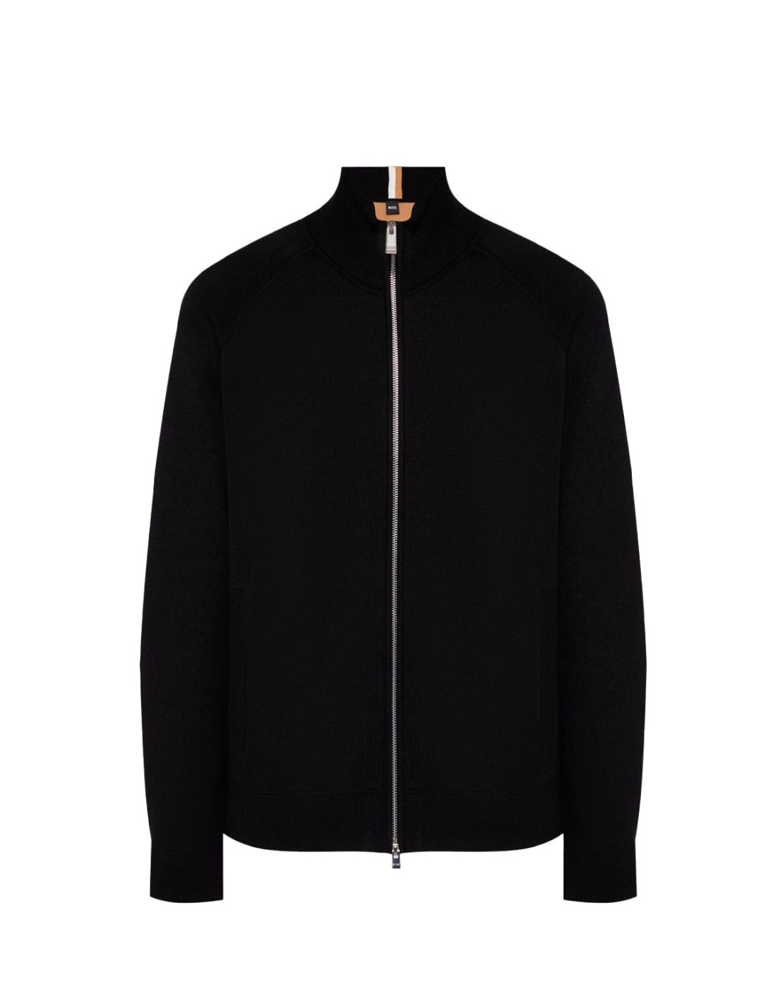 BossLa Chaqueta Idino con Logo de Hugo Boss en color negro combina elegancia y confort en una prenda atemporal. Su cuello alto y el cierre frontal de cremallera le aportan un estilo moderno y funcional, ideal para climas frescos. Confeccionada en una mezcla premium de 70 % algodón y 30 % lana, ofrece suavidad, calidez y durabilidad. El discreto logo de la marca añade un toque distintivo y sofisticado. Una chaqueta versátil que se adapta tanto a looks casuales como a combinaciones más elegantes.