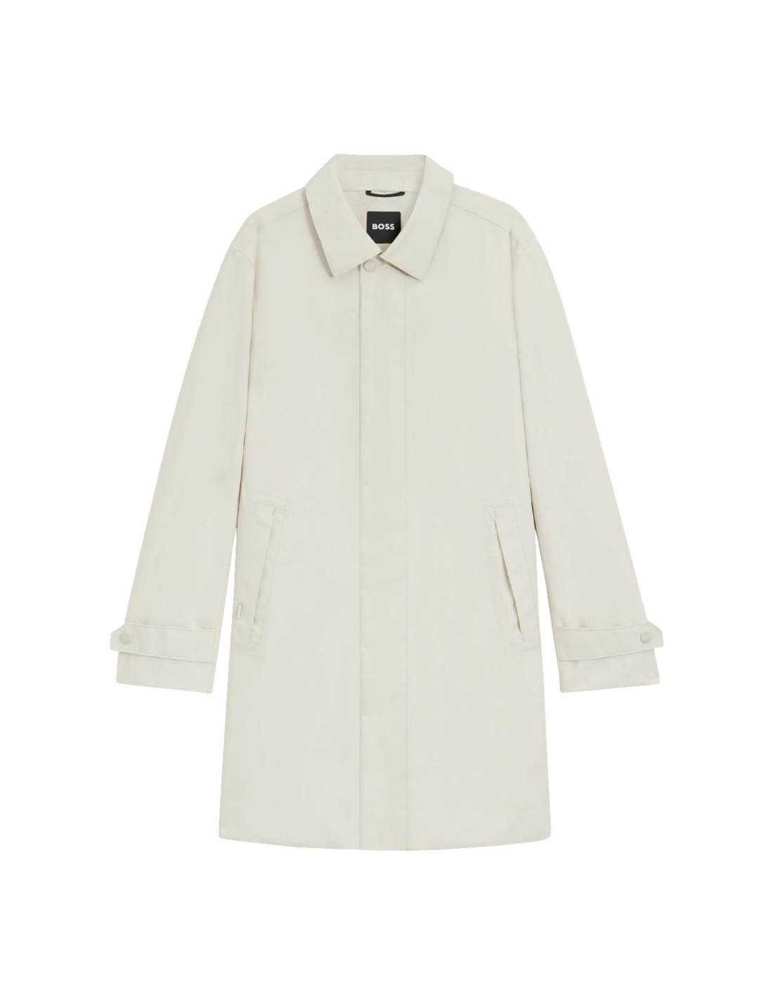 Hugo BossEl abrigo GORE-TEX® con cierre oculto de BOSS en color blanco combina elegancia y funcionalidad en un diseño moderno. Presenta un cierre frontal con cremallera y botones a presión ocultos para un acabado limpio y sofisticado. Incluye ribetes reflectantes bajo el cuello y dos prácticos bolsillos interiores. Su ajuste regular y el forro parcial garantizan comodidad y libertad de movimiento. Ideal para mantener un estilo pulido en días de clima impredecible.