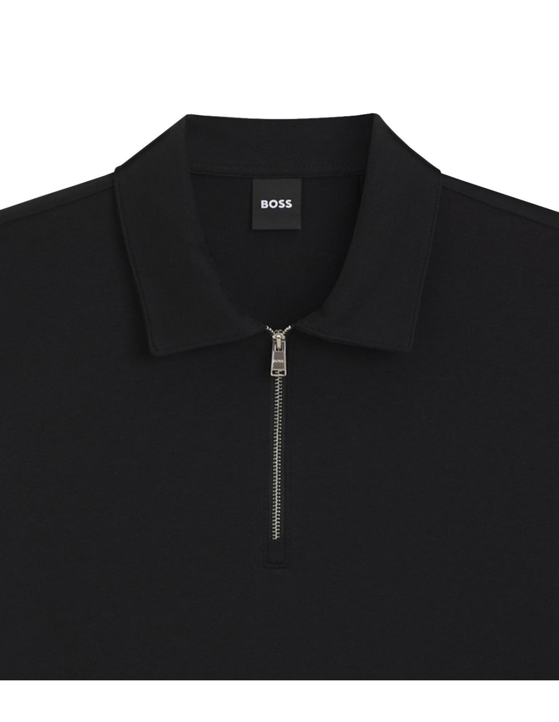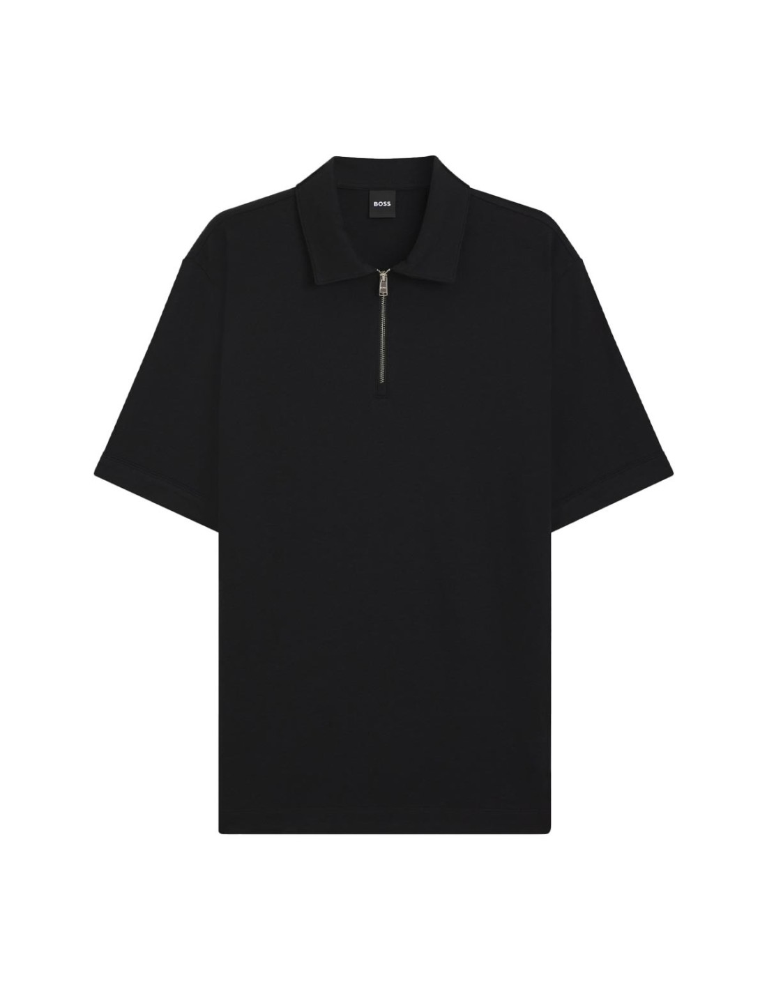 El polo con cuello de cremallera de BOSS en color negro combina un diseño moderno con materiales de alta calidad. Confeccionado en un tejido de piqué transpirable compuesto por 67% lyocell y 33% algodón, ofrece suavidad, frescura y confort excepcionales. Su ajuste regular, mangas cortas y longitud estándar lo hacen ideal para el uso diario. El cuello con cremallera añade un toque contemporáneo y diferenciador. Perfecto para quienes buscan estilo y funcionalidad en una sola prenda.