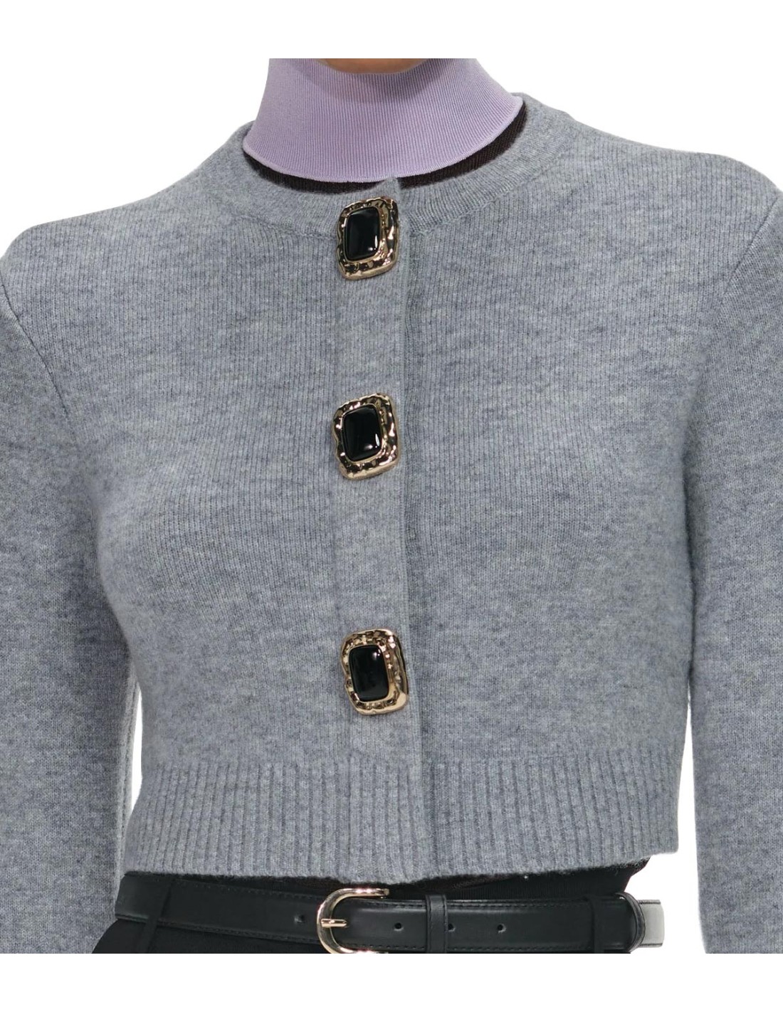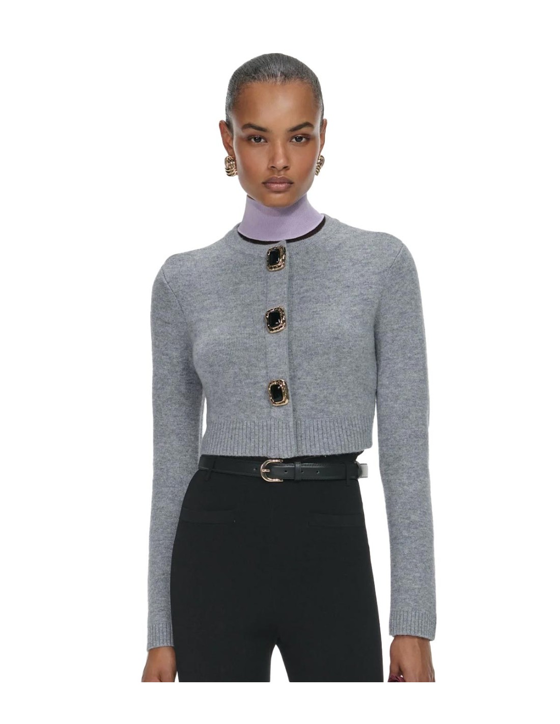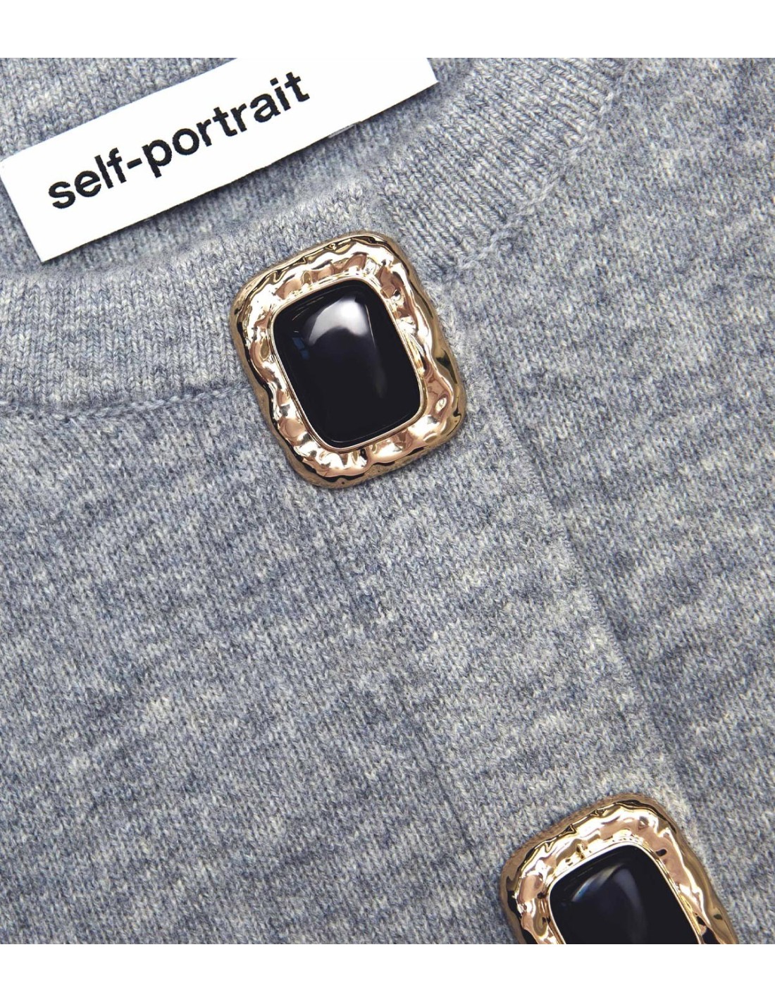 Self PortraittEl Cárdigan de Punto de Self-Portrait es una prenda versátil y elegante, ideal para cualquier ocasión. Confeccionado en lana gris, está rematado con botones dorados y negros jaspeados de inspiración vintage que aportan un toque distintivo. Su corte favorecedor se adapta fácilmente a distintos estilos, desde vaqueros anchos hasta minifaldas. Un básico con carácter para tu fondo de armario.