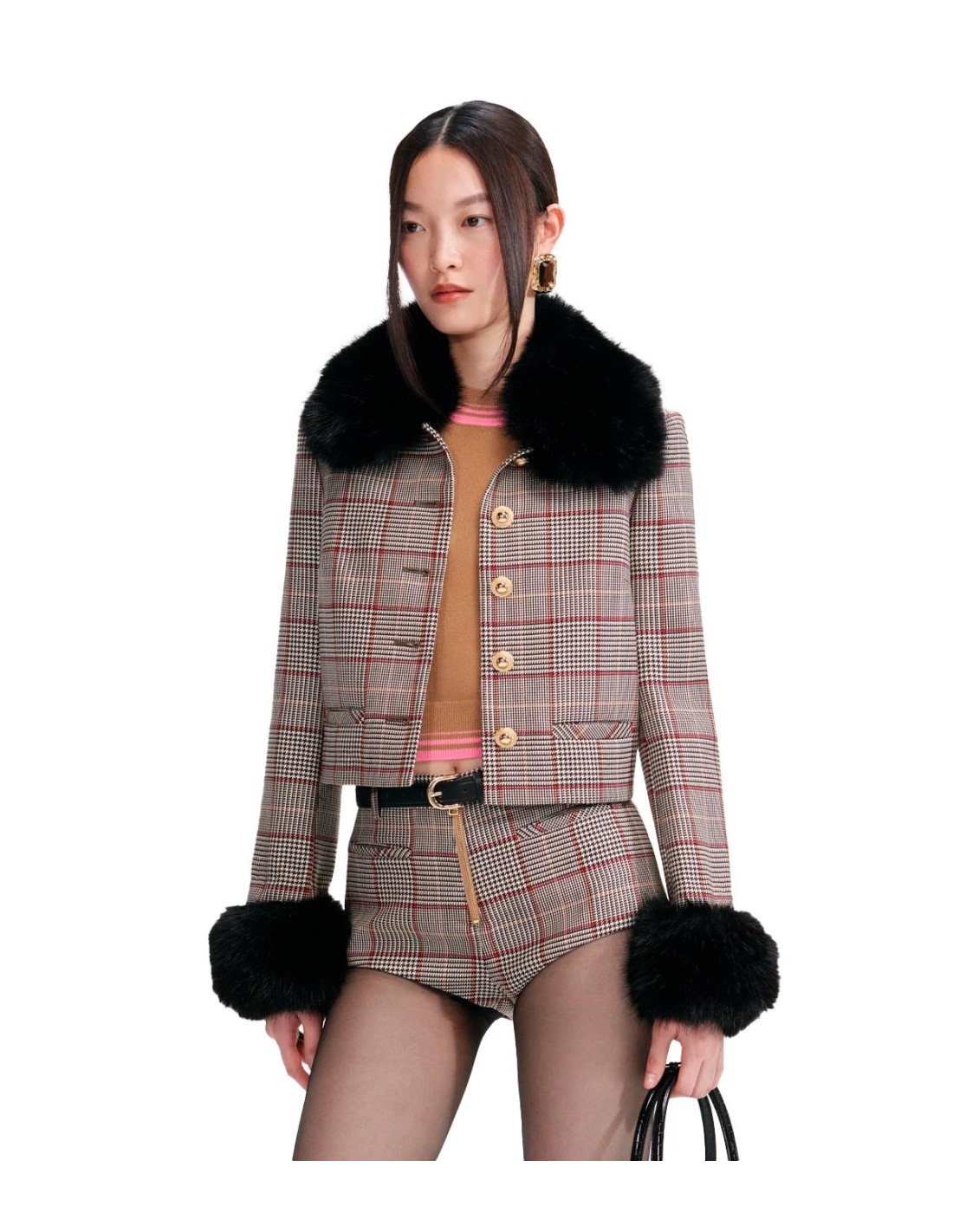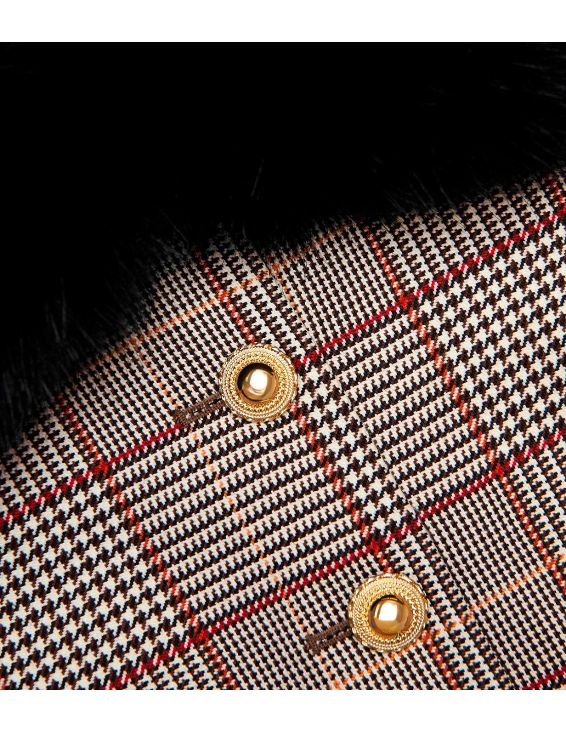 Self PortraittLa Chaqueta Abotonada de Piel de Self-Portrait fusiona el estilo preppy con un toque elegante gracias a su diseño de cuadros en sarga de lana. Enmarcada por un cuello y puños de piel sintética extraíbles, aporta versatilidad y sofisticación al look. Su ajuste relajado y los botones dorados en la parte delantera añaden un aire glamuroso y femenino. Combínala con los shorts a juego para una reinterpretación moderna del conjunto clásico.