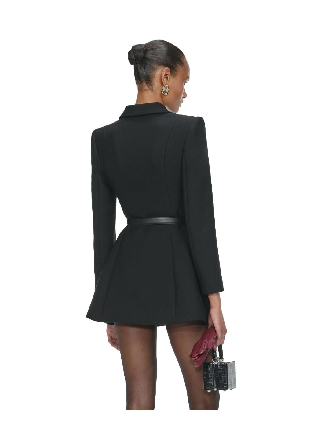 Self PortraittEl Vestido Wool Crepe de Self-Portrait es un elegante blazer cruzado confeccionado en crepé de lana negro. Su corte ajustado se realza con un cinturón extraíble que define la cintura, mientras que el cierre frontal con botones aporta un acabado sofisticado. Las hombreras encapsuladas añaden estructura y estilo. Perfecto para combinar con tacones y lucir impecable del trabajo al ocio.