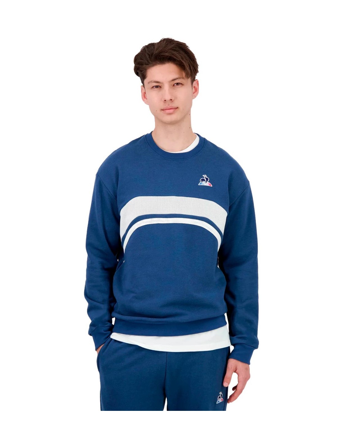 Le Coq SportifSudadera Contemporain de Le Coq Sportif de estilo deportivo y elegante, con cuello redondo y manga larga que brindan confort y abrigo. Incorpora ribetes en las mangas y una doble franja en el pecho en color de contraste, añadiendo un toque distintivo al diseño. El icónico logo del gallo se encuentra en el pecho, destacando la autenticidad de la marca. Ideal para un look casual con sello francés y máxima comodidad.