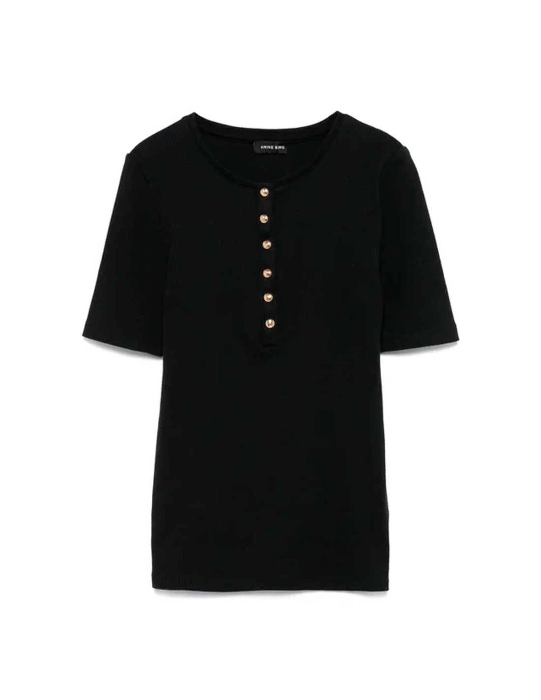 Anine BingLa Camiseta Alessia de Anine Bing en color negro es una prenda elegante y versátil, ideal para el día a día o para elevar tus looks más minimalistas. Confeccionada con un favorecedor corte entallado, presenta cuello redondo, manga corta y delicados botones dorados que aportan un toque sofisticado. Su diseño atemporal se adapta a múltiples estilos y ocasiones. Un básico refinado para tu armario.