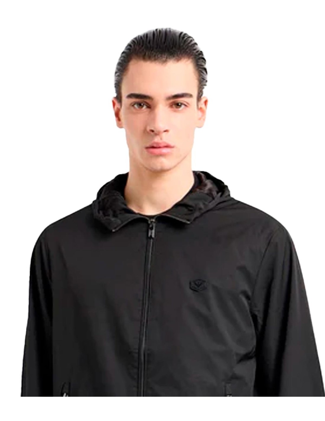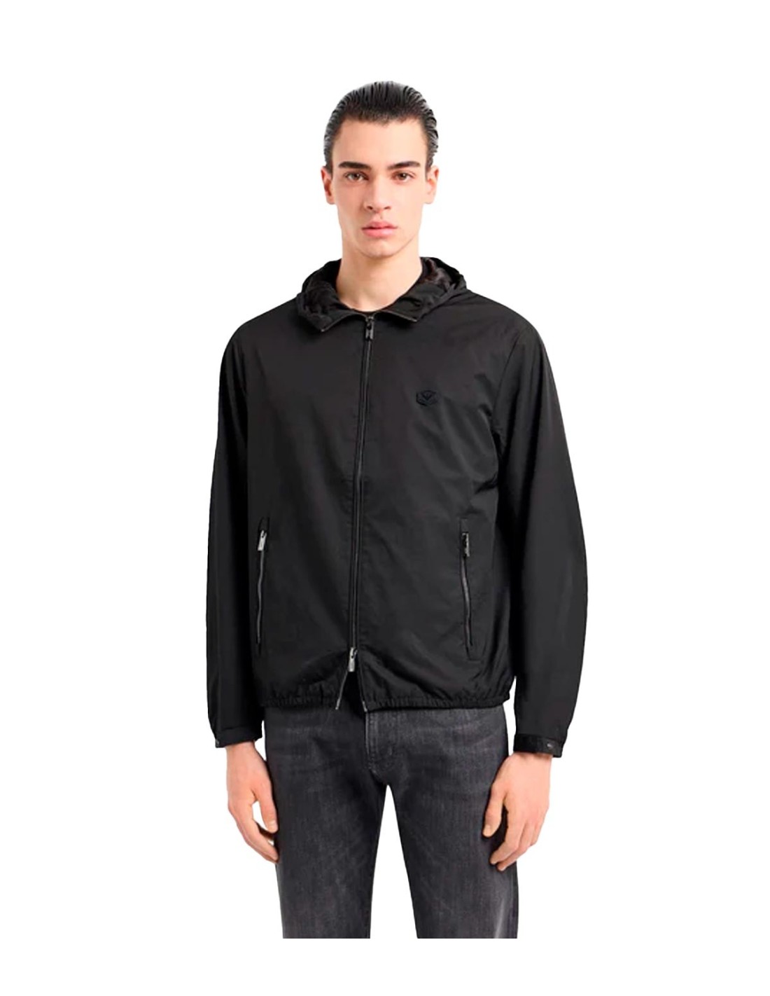 La Chaqueta Con Logo de Emporio Armani en color negro combina funcionalidad y estilo con un diseño moderno y versátil. Cuenta con capucha ajustable, mangas largas y cierre frontal de cremallera para mayor protección. El emblemático logo del águila en el pecho y los bolsillos con cremallera aportan un toque distintivo y práctico. Confeccionada en 100% poliéster, es ideal para el uso diario en climas frescos.