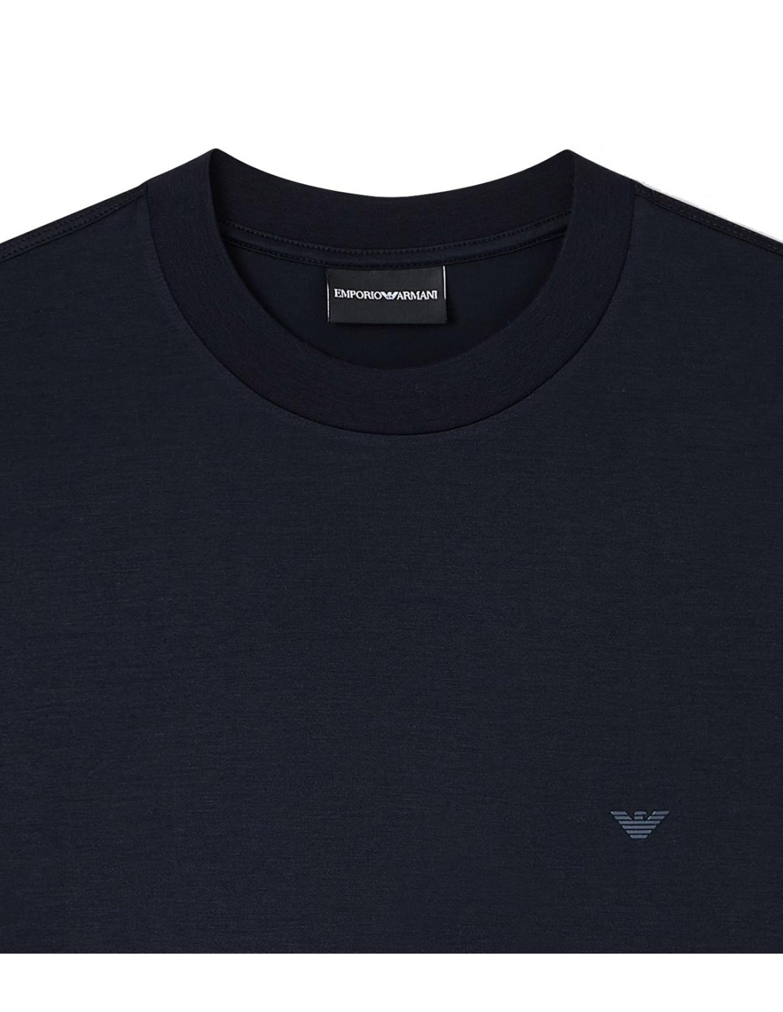 ArmaniLa Camiseta Travel Essential de Emporio Armani en color marino es una prenda versátil y cómoda para el día a día. Confeccionada en punto de mezcla de 70% lyocell y 30% algodón, ofrece un tacto suave y transpirable. Su diseño de cuello redondo y manga corta se ajusta en un regular fit que favorece cualquier silueta. Destaca la icónica microáguila bordada a tono en el pecho, que aporta un toque de distinción. Ideal para combinar estilo y confort con un aire contemporáneo.