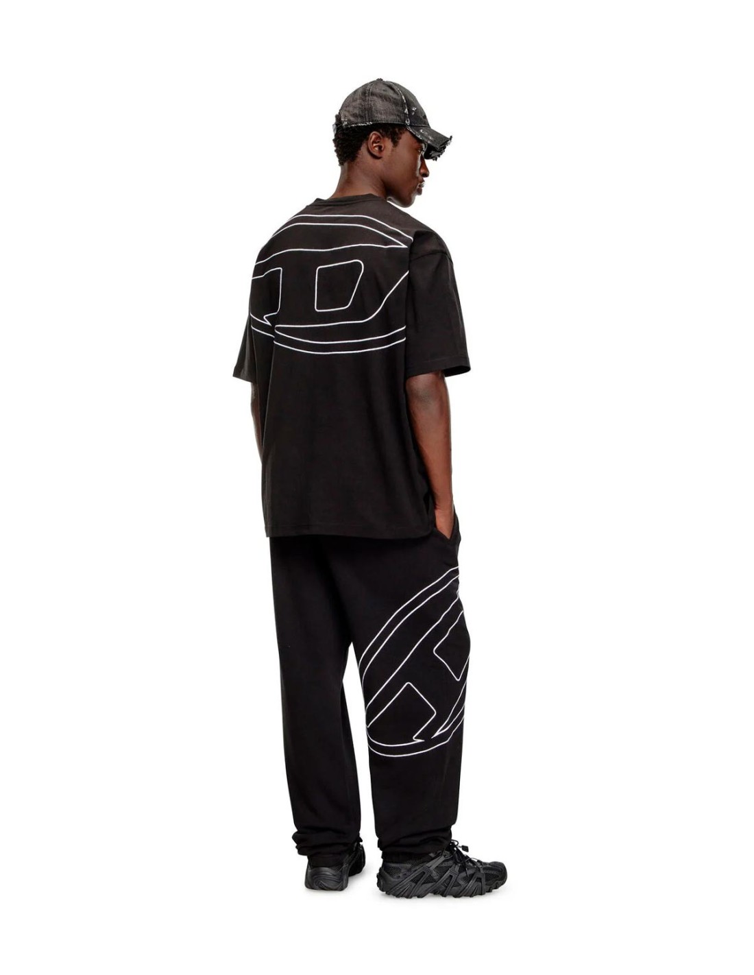 DieselLa Camiseta T-Boggy-Megoval-D de Diesel en color negro combina comodidad y estilo con un ajuste holgado ideal para el día a día. Cuenta con cuello redondo y mangas cortas caídas que aportan un toque desenfadado. En la espalda destaca un maxilogotipo D ovalado bordado en contraste, mientras que en el pecho luce una versión pequeña del mismo tono. Confeccionada 100% en algodón, garantiza suavidad y frescura. Una prenda versátil y moderna para cualquier ocasión casual.