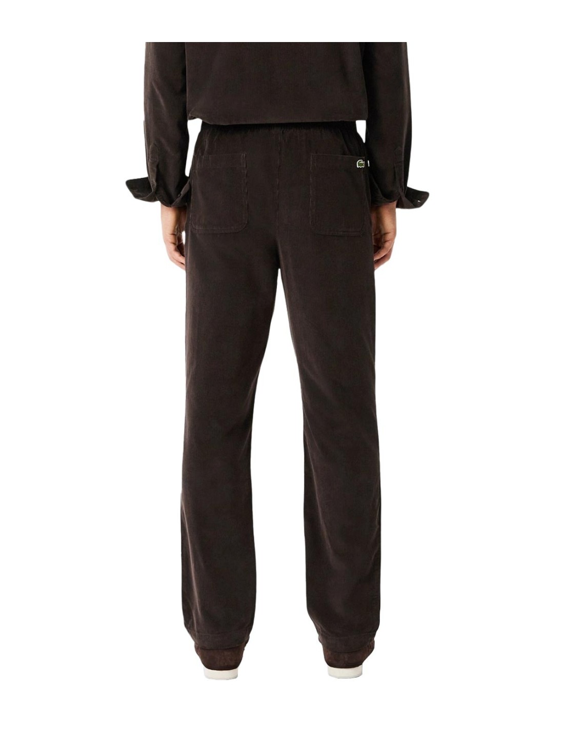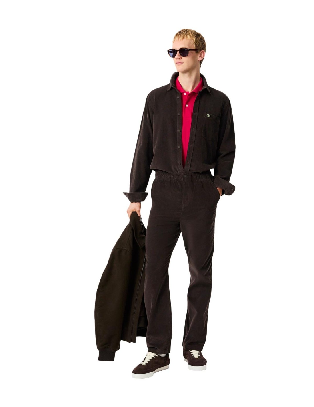 LacosteEl Pantalón de Pana de Corte Regular de Lacoste en color marrón combina confort y estilo con un aire retro. Confeccionado en pana de algodón 100%, presenta una cintura elástica con cordón ajustable que ofrece máxima comodidad durante todo el día. Su corte regular con pernera ligeramente acampanada aporta un toque moderno y desenfadado. El diseño se completa con un discreto cocodrilo bordado en la parte trasera. Ideal para looks casuales con un acabado distintivo y elegante.