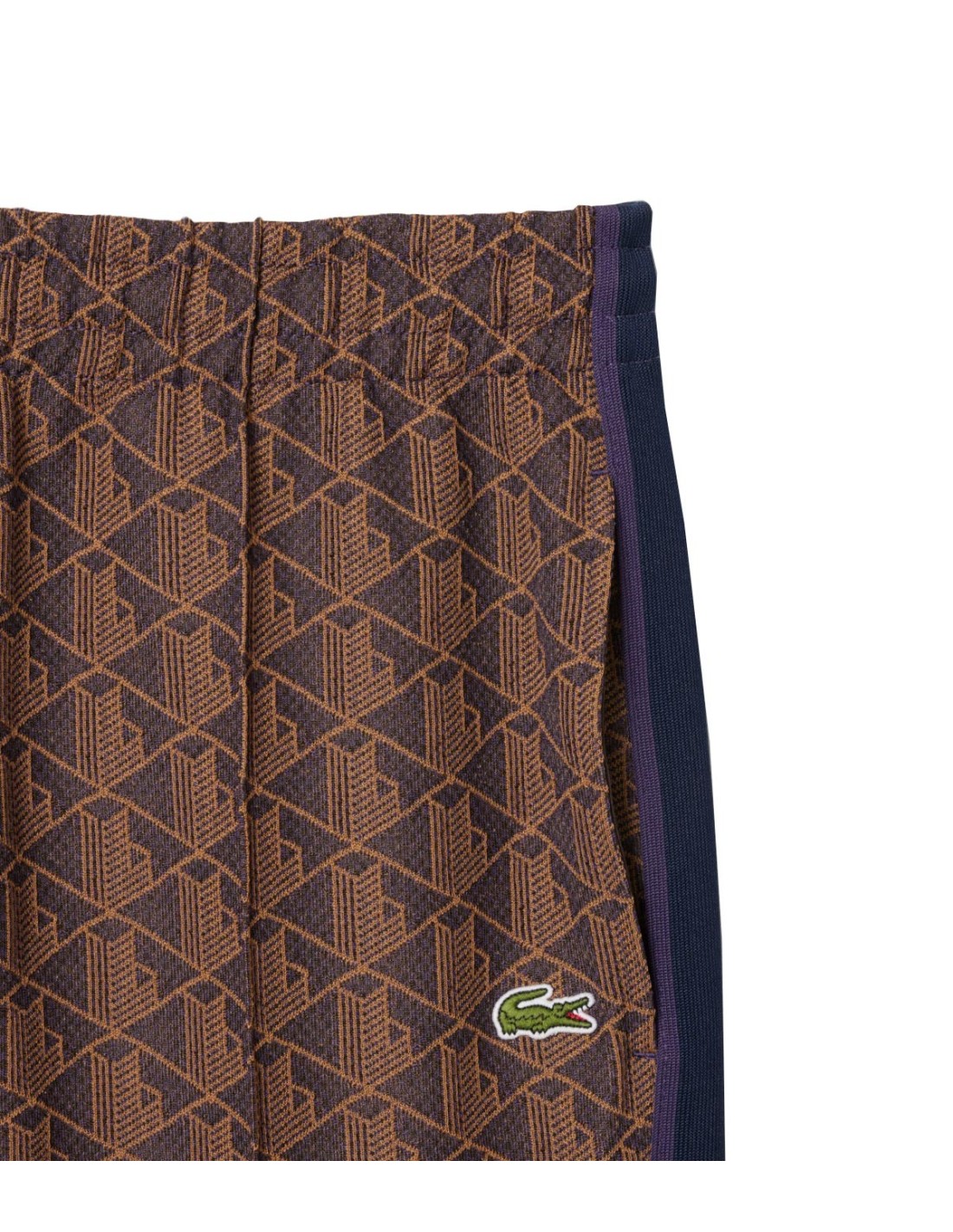 LacosteEl Pantalón de Chándal Paris de Lacoste en color marrón combina estilo y funcionalidad con un monograma de punto jacquard que le aporta un diseño exclusivo. Cuenta con cordones ajustables en la cintura para un ajuste cómodo y personalizado. Destaca el cocodrilo bordado en el bolsillo, sello distintivo de la marca. Su corte recto y regular ofrece un look clásico y versátil. Confeccionado en una mezcla de poliéster, algodón y poliamida, garantiza durabilidad y confort en cada uso.