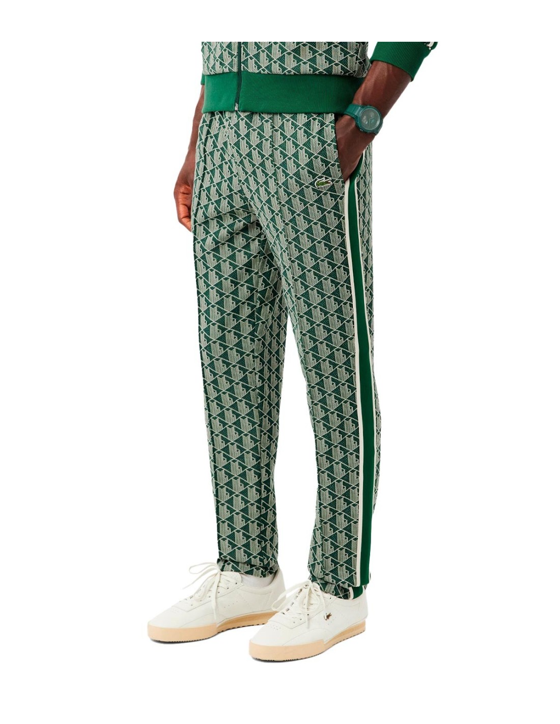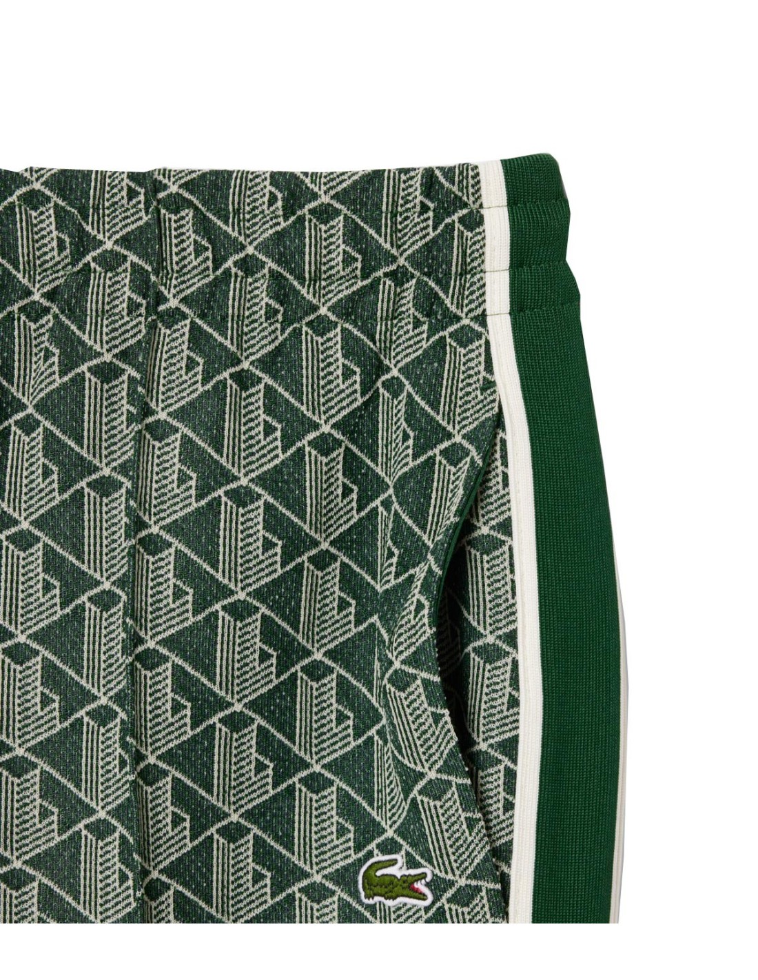 LacosteEl Pantalón de Chándal Paris de Lacoste en color verde combina estilo y funcionalidad con un monograma de punto jacquard que le da un toque único. Cuenta con cordones ajustables en la cintura para un ajuste cómodo y personalizado. Destaca el cocodrilo bordado en el bolsillo, símbolo icónico de la marca. Su corte recto y regular aporta un look clásico y versátil. Fabricado con una mezcla de poliéster, algodón y poliamida, ofrece durabilidad y confort para el uso diario.