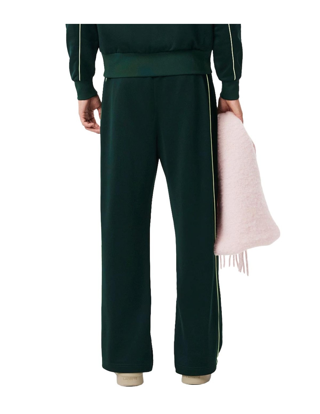 El Pantalón Loose Fit de Satén con Cocodrilo de Lacoste en color verde combina comodidad y estilo con un diseño moderno y deportivo. Confeccionado en tejido polar con efecto satén, ofrece suavidad y ligereza para el día a día. Su corte holgado y los ribetes en contraste aportan un toque elegante y contemporáneo. Destaca el cocodrilo bordado, que añade un detalle icónico y distintivo a esta prenda única.